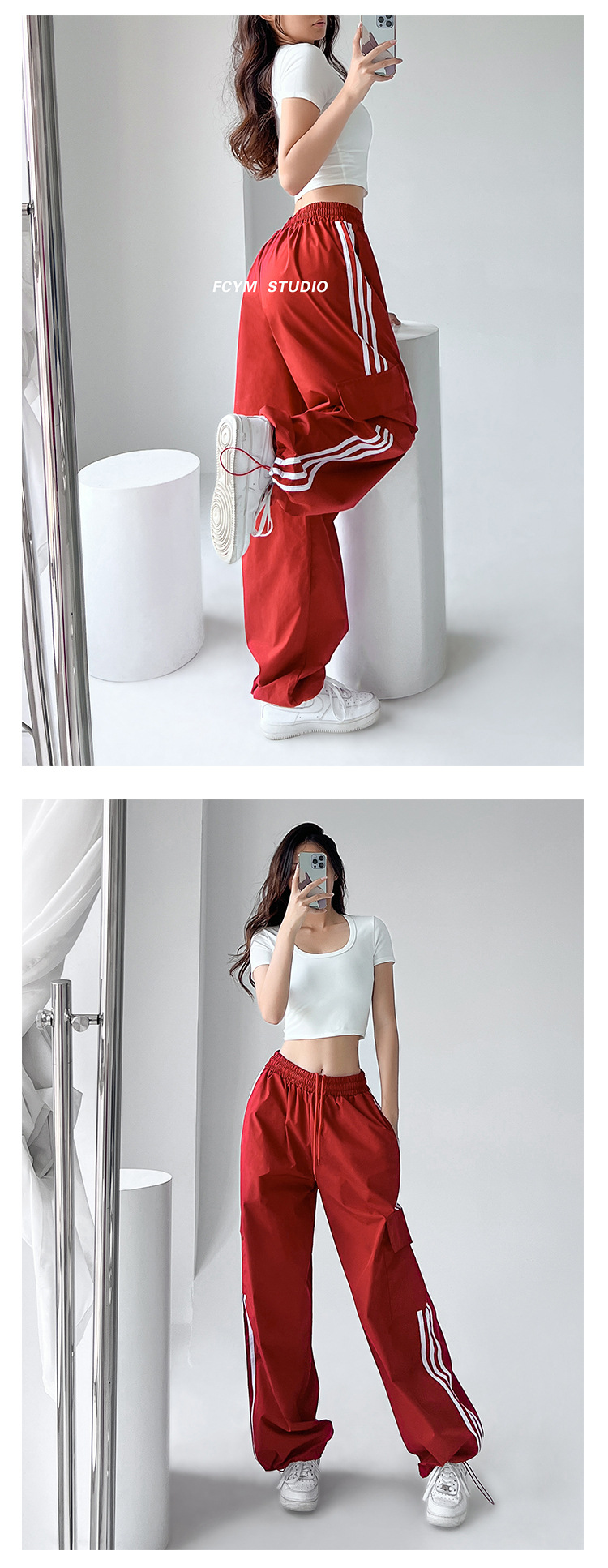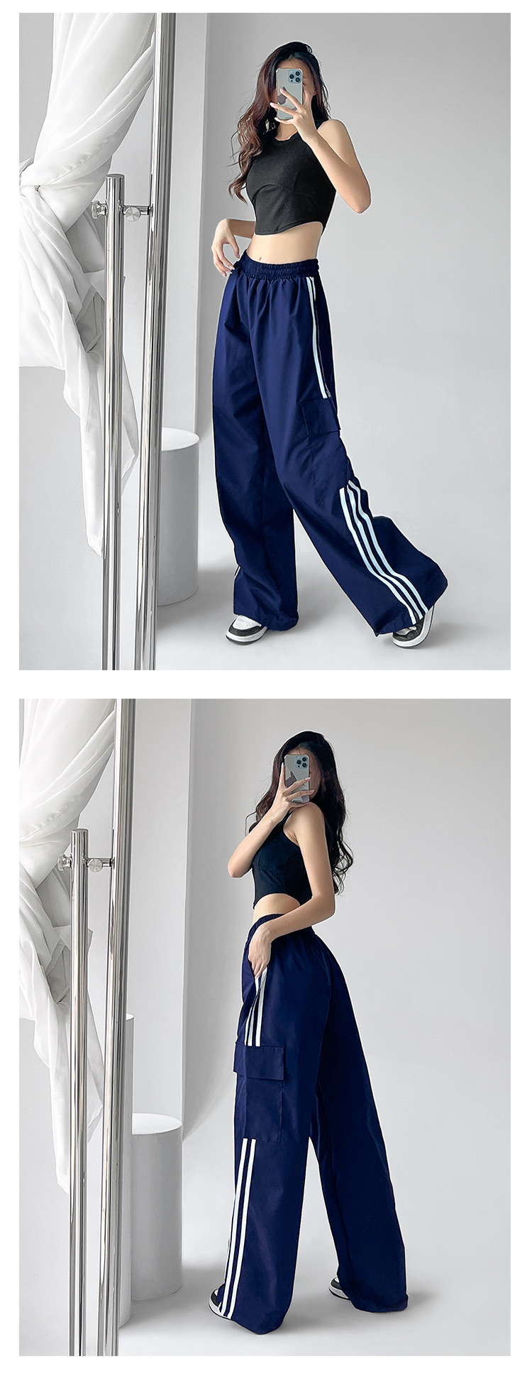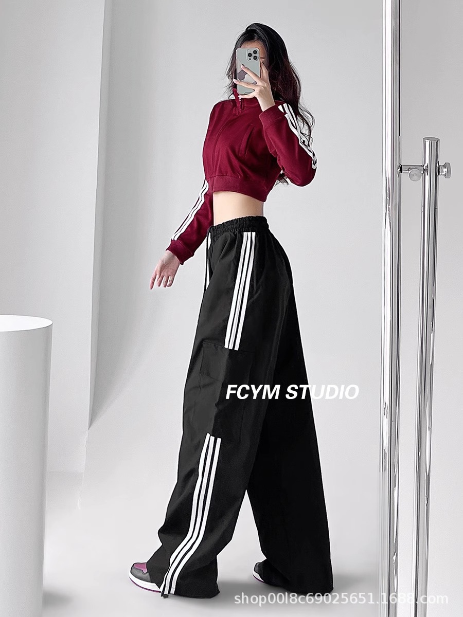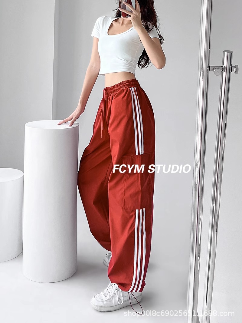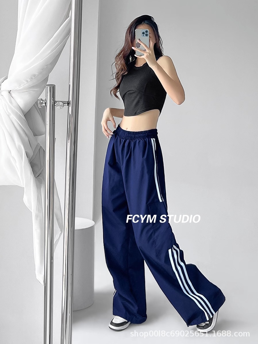 미국식 레트로 3 바 야외 하이킹 크레인 바지 여성의 봄과 가을 새로운 와이드 레그 스포츠 바지 높은 허리 바지스토어 가기