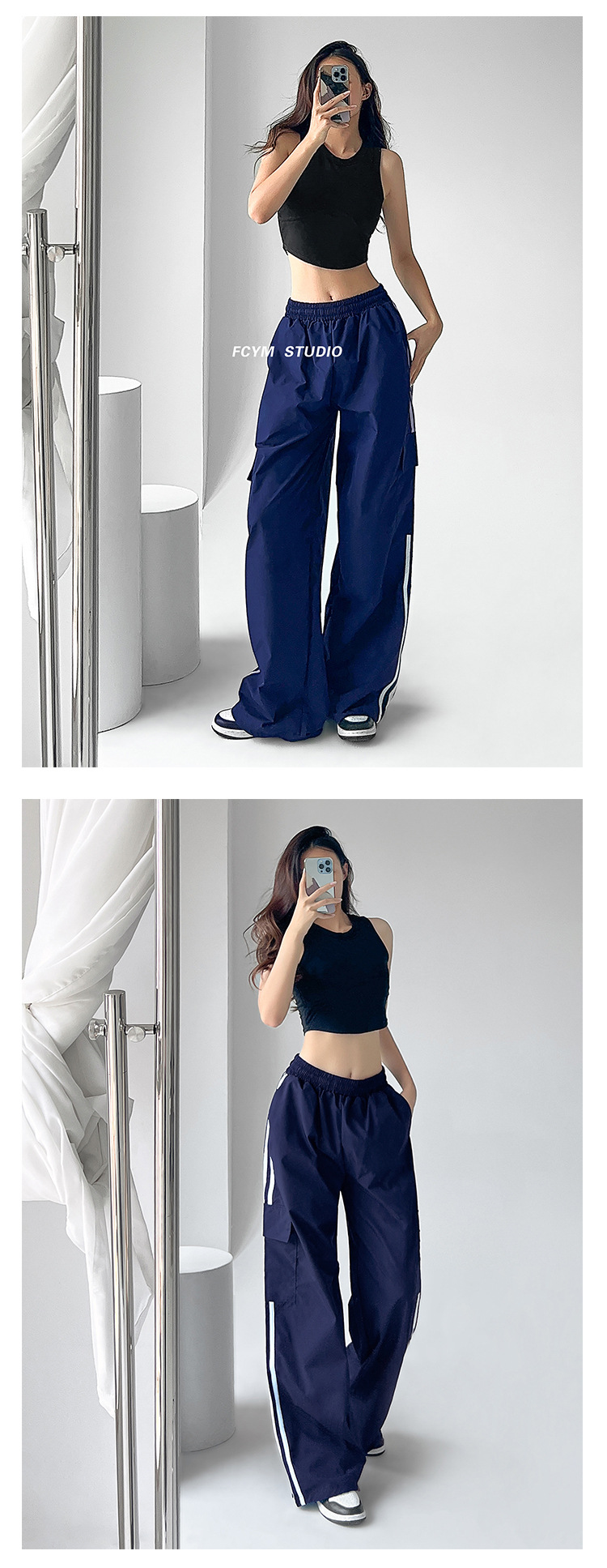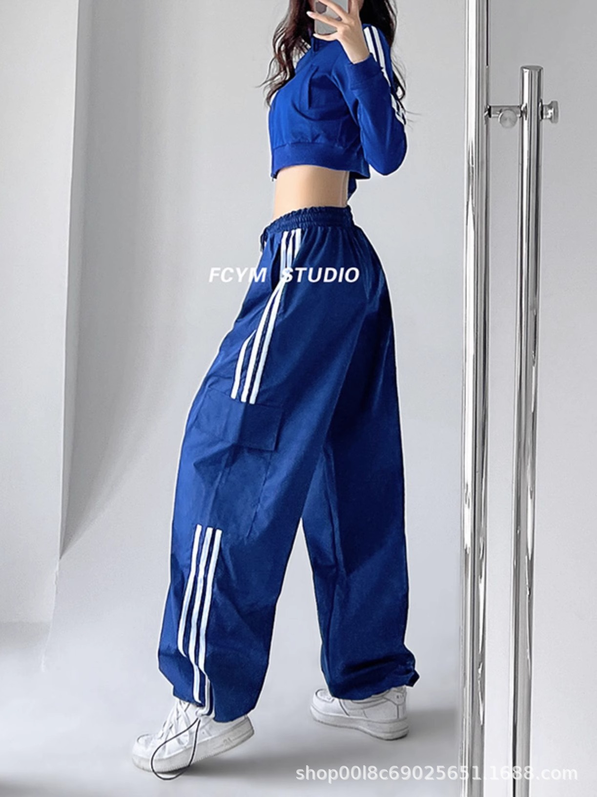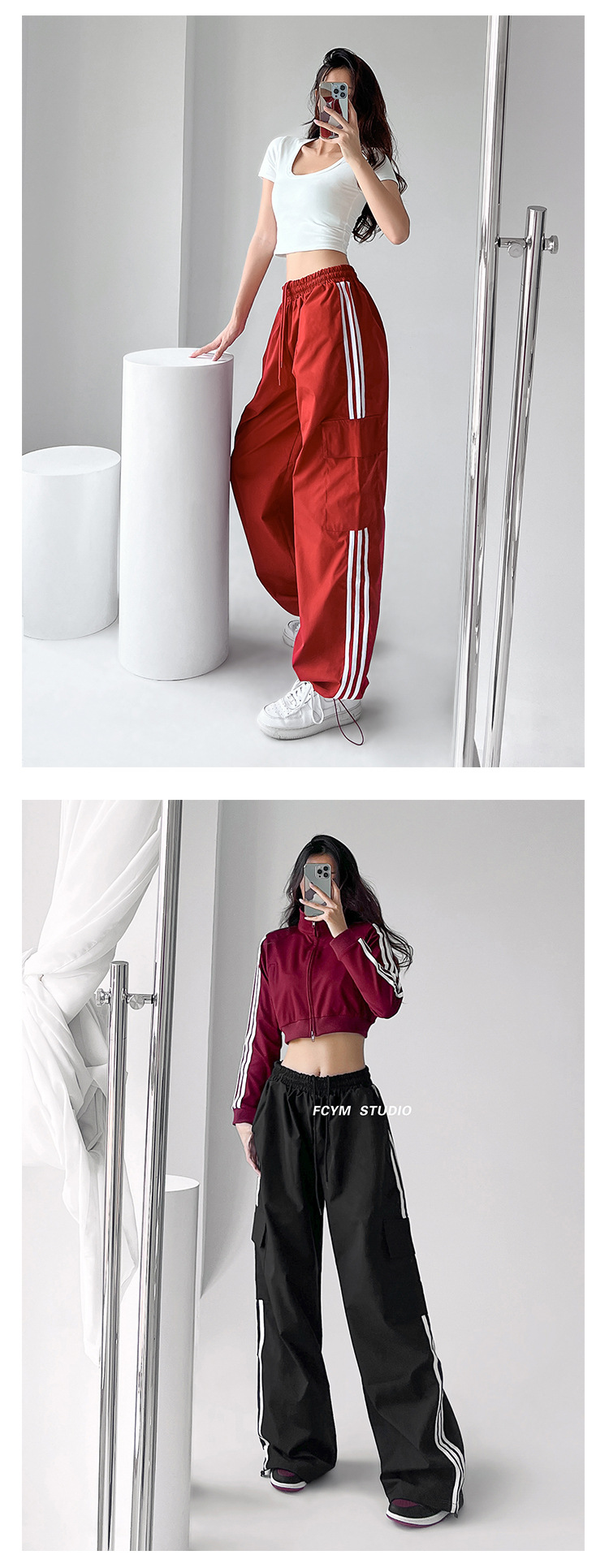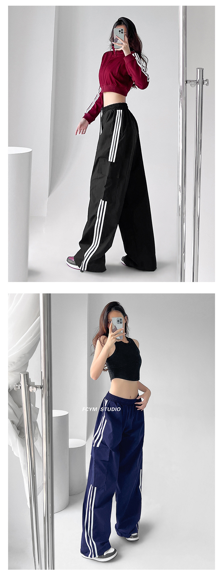 미국식 레트로 3 바 야외 하이킹 크레인 바지 여성의 봄과 가을 새로운 와이드 레그 스포츠 바지 높은 허리 바지스토어 가기