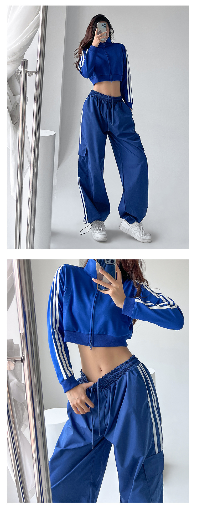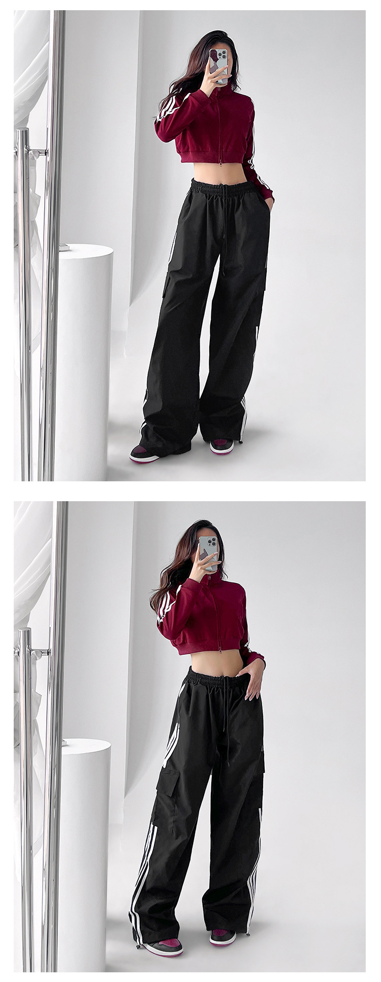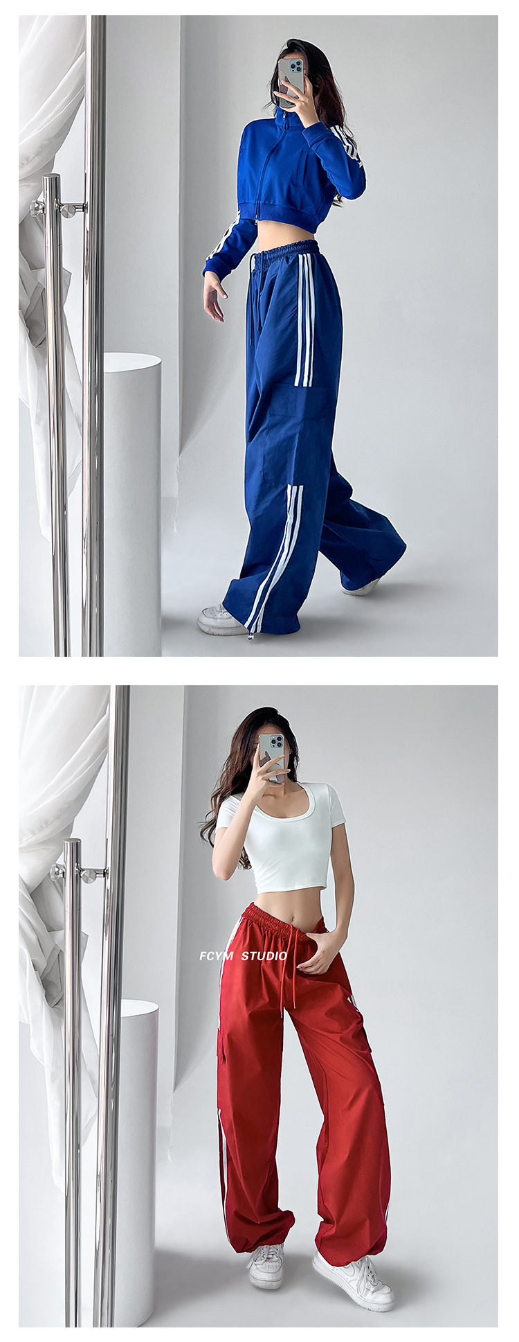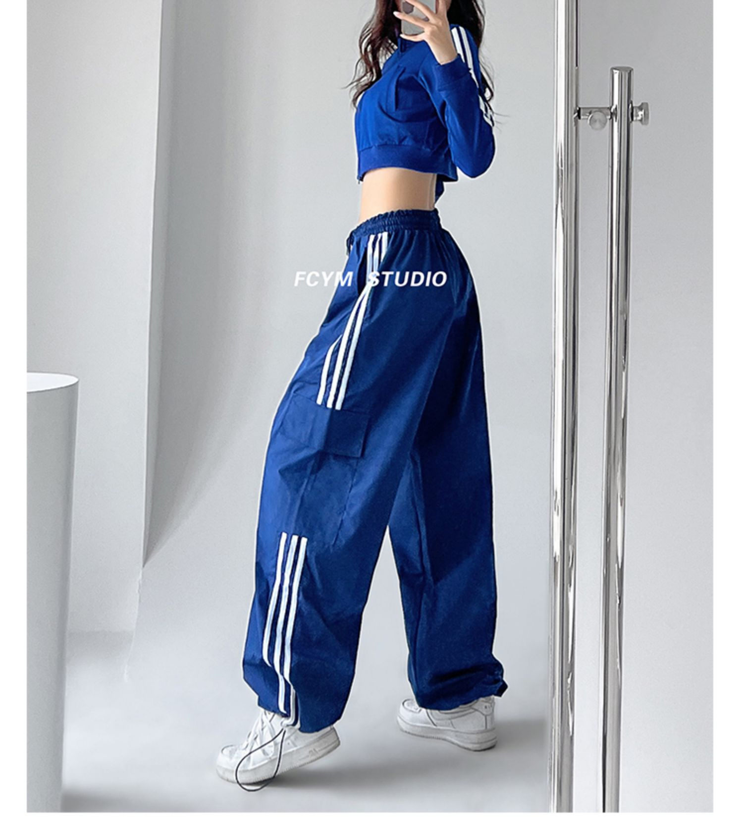 미국식 레트로 3 바 야외 하이킹 크레인 바지 여성의 봄과 가을 새로운 와이드 레그 스포츠 바지 높은 허리 바지스토어 가기