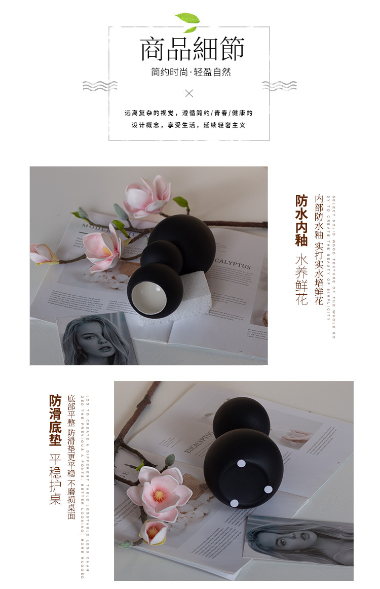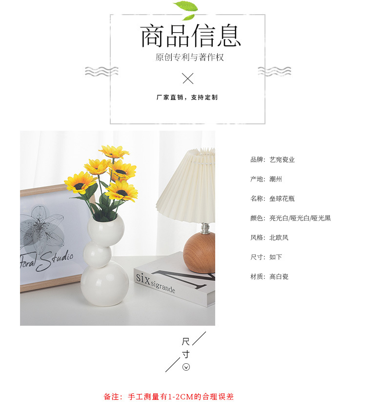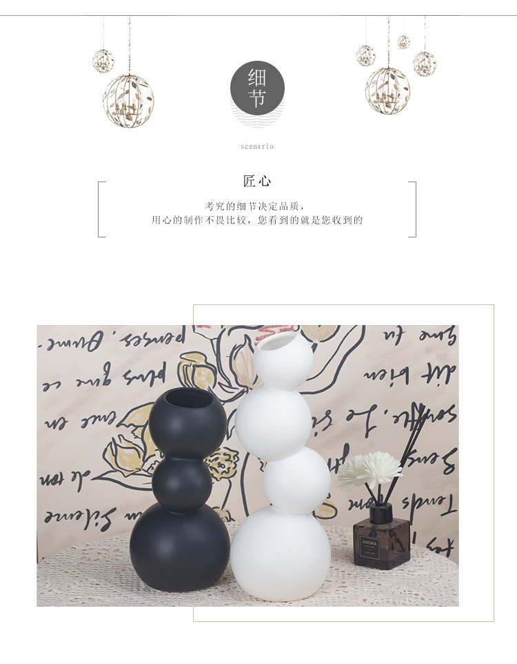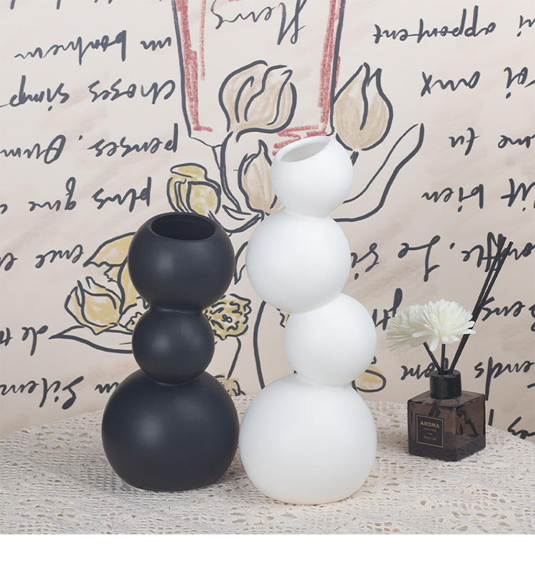 현대 간단한 흑백 공 모양의 세라믹 꽃병 장식품 홈 공예 TV 캐비닛 데스크탑 공장 직접 도매스토어 가기