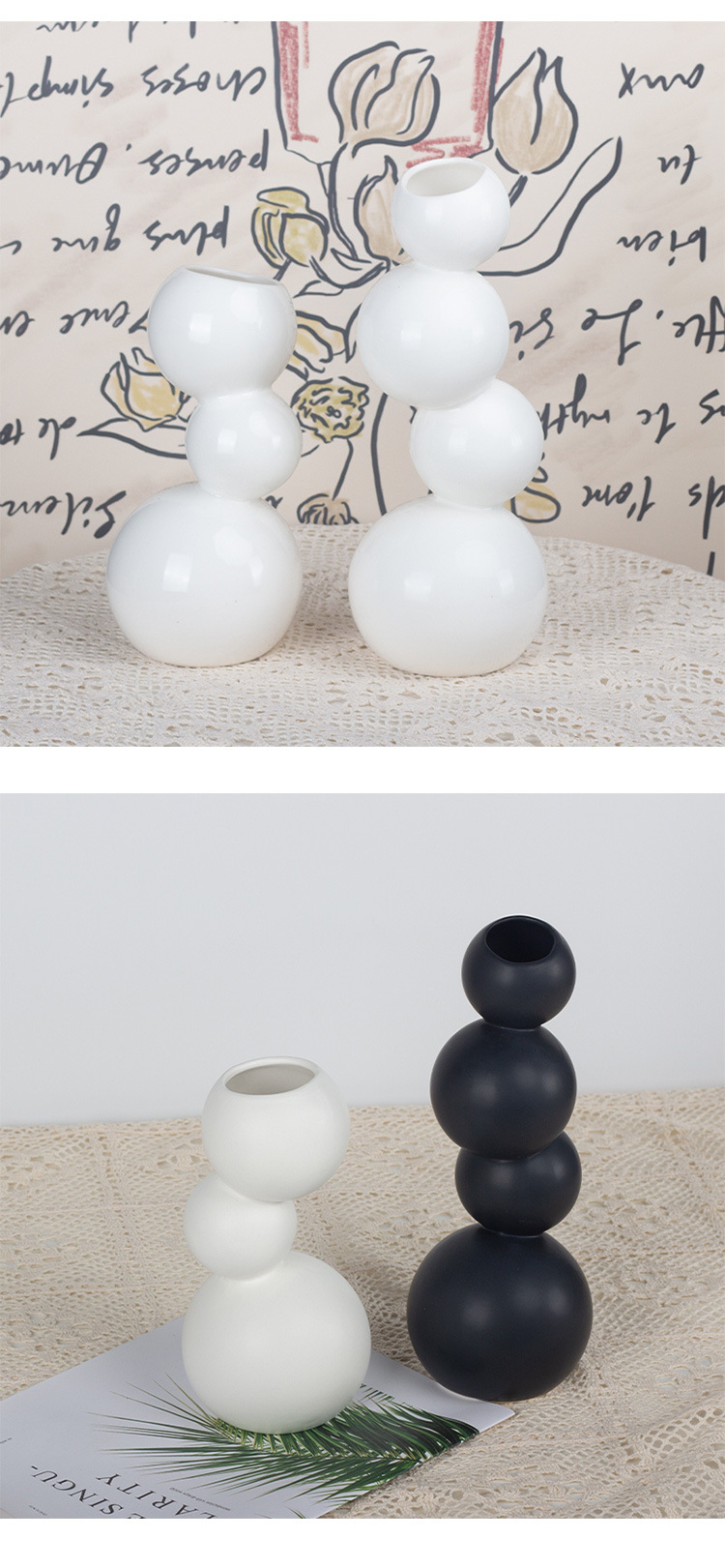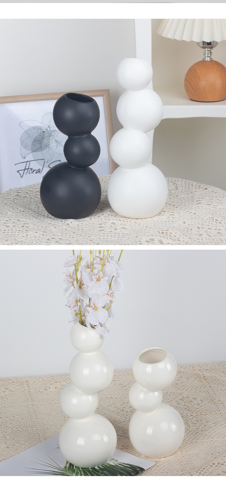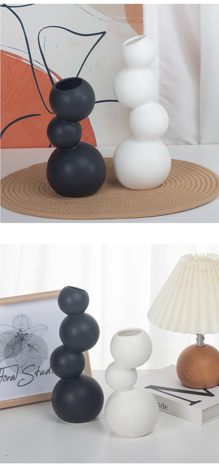 현대 간단한 흑백 공 모양의 세라믹 꽃병 장식품 홈 공예 TV 캐비닛 데스크탑 공장 직접 도매스토어 가기