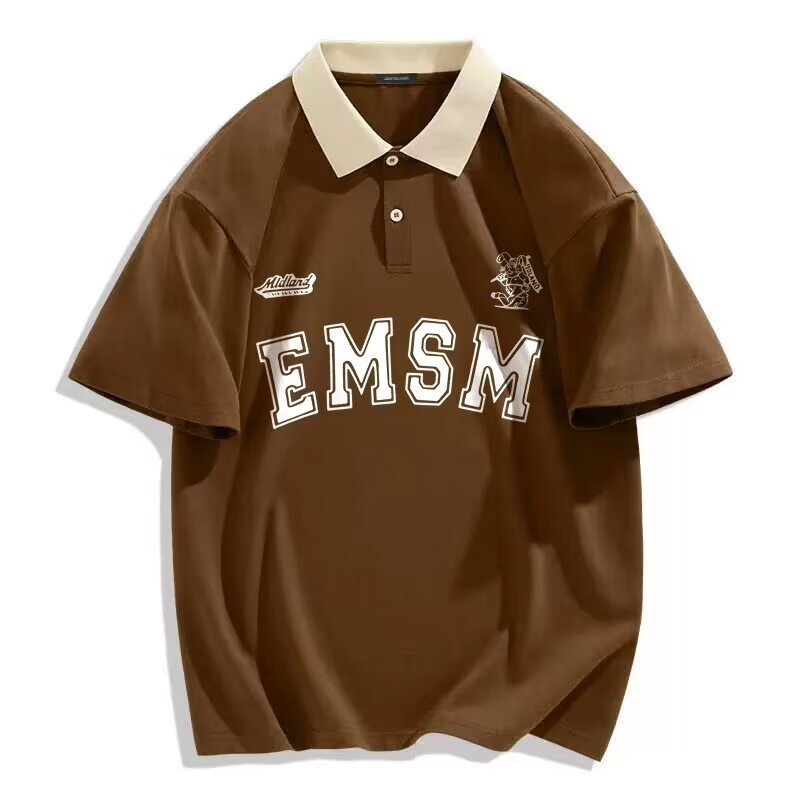 대학 스타일 폴로 셔츠 짧은 소매 티셔츠 남성과 여성 2024 여름 새 중학교 학생 하프 소매 티셔츠 옷깃 탑