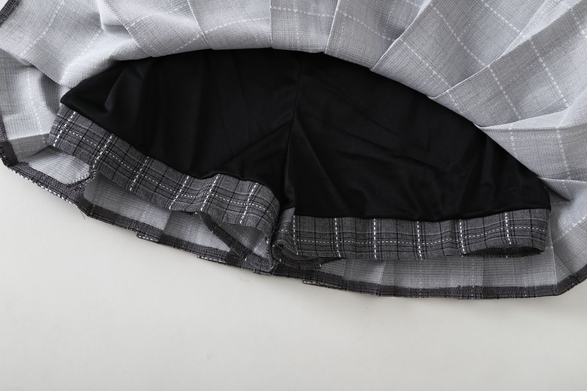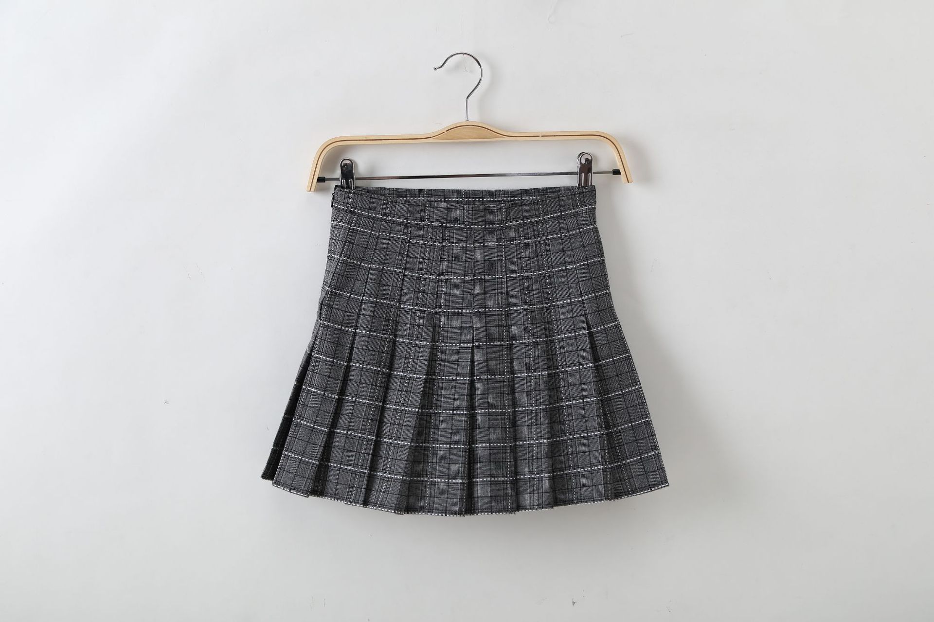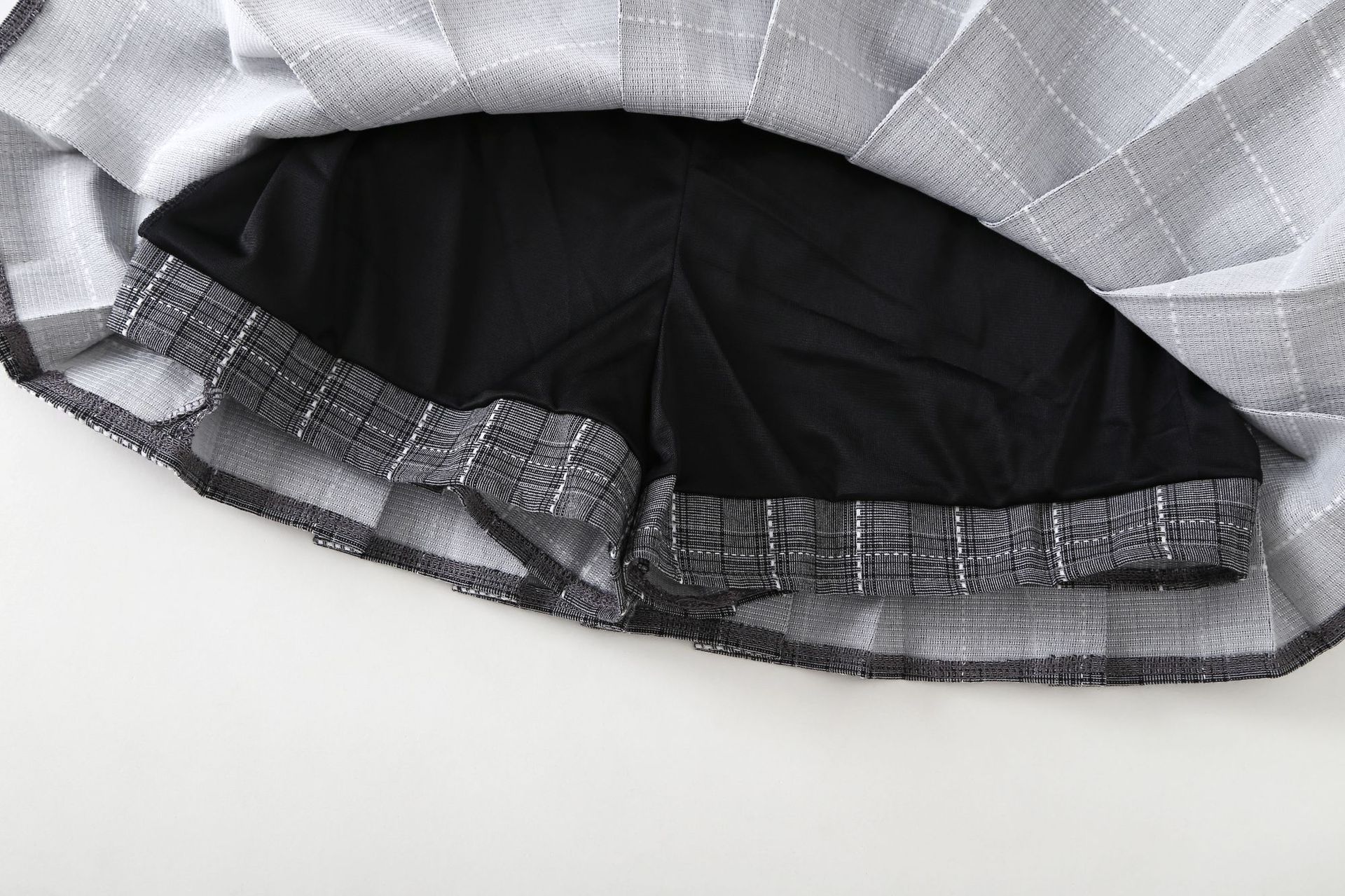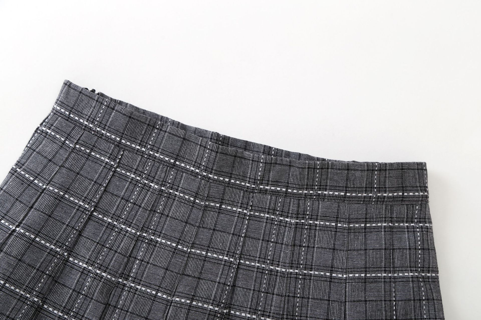 • 블랙 그레이 1846 대마 로프 격자 무늬 스커트