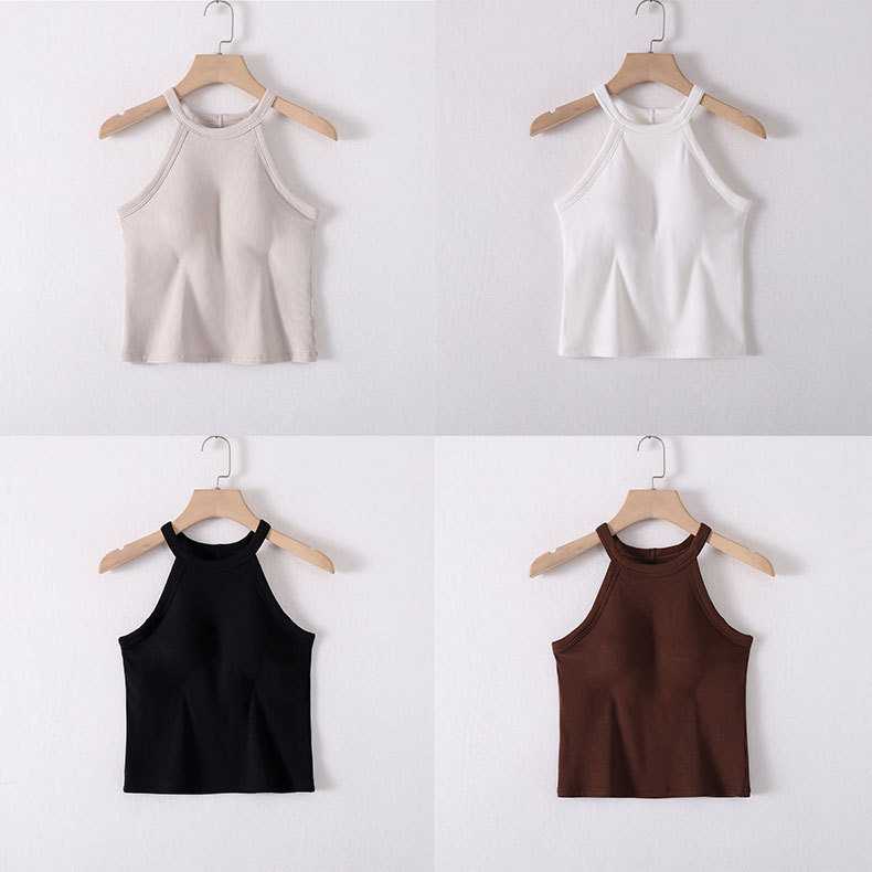 2024 봄과 여름 새로운 도착 목 조끼 가슴 패드 여자 컵 원피스 푸시업 아름다운 백슬링베이스 슬리밍 여성