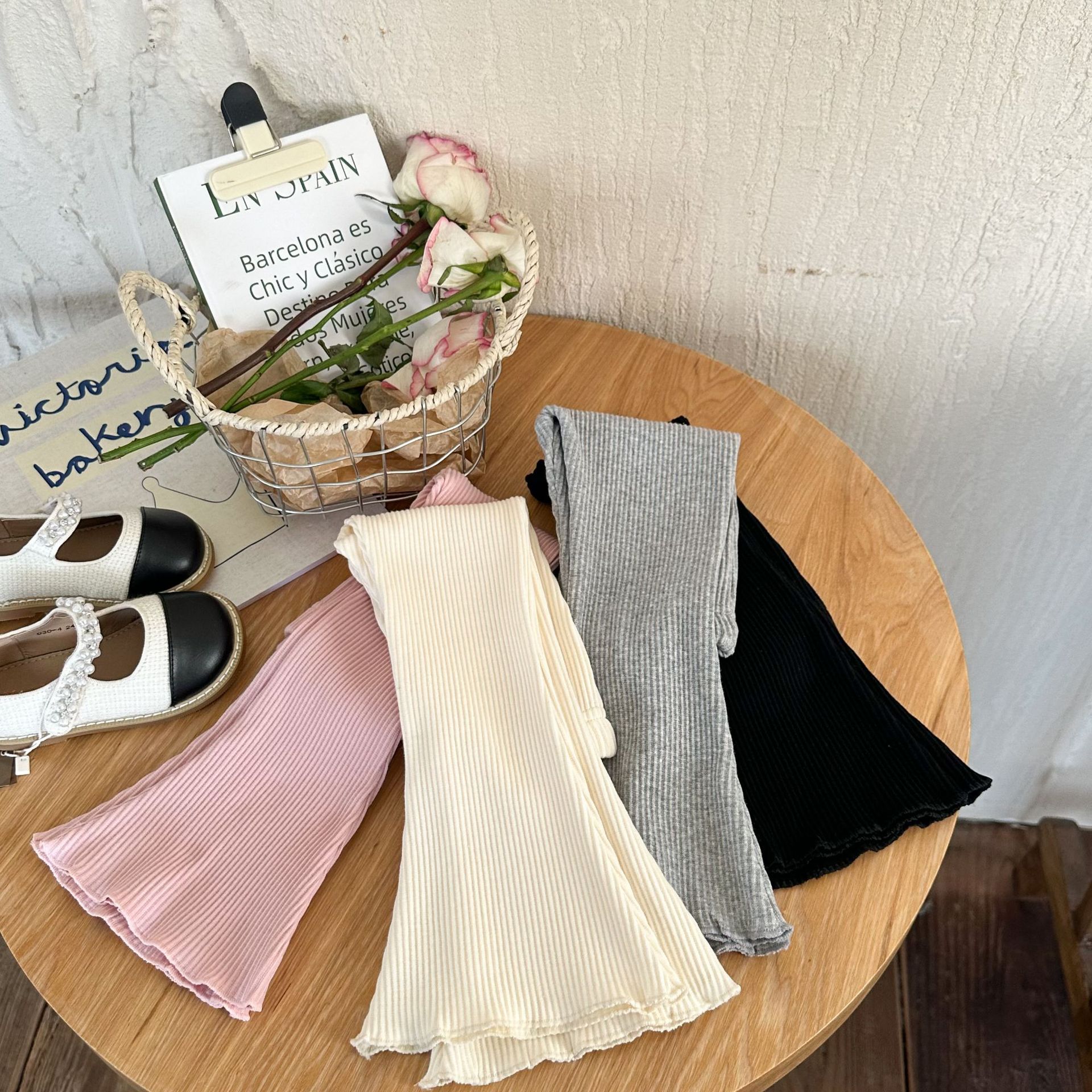 소녀상 고탄성 플라 바지 2024 봄 새 도착 한국식 올매치 하이 웨이스트 바지 어린이 구덩이베이스 복부 바지