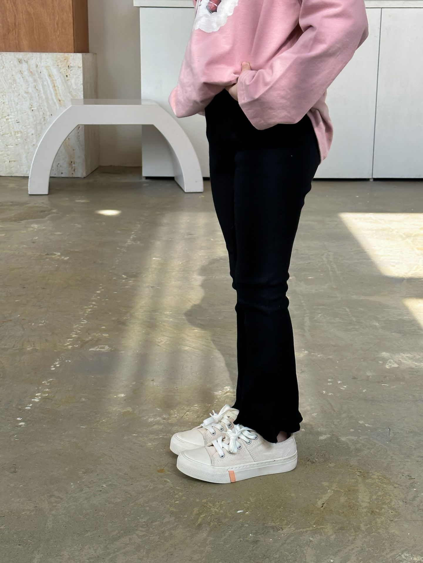 소녀상 고탄성 플라 바지 2024 봄 새 도착 한국식 올매치 하이 웨이스트 바지 어린이 구덩이베이스 복부 바지스토어 가기
