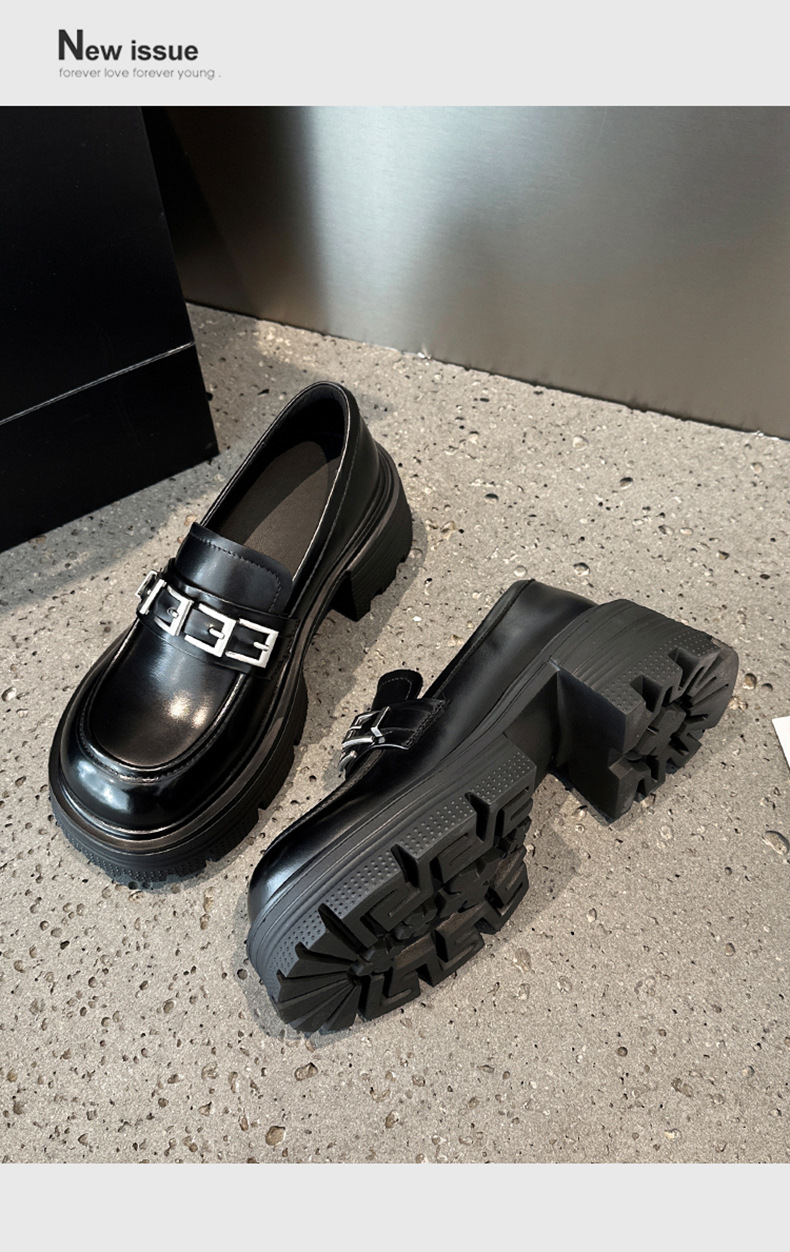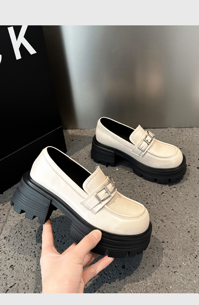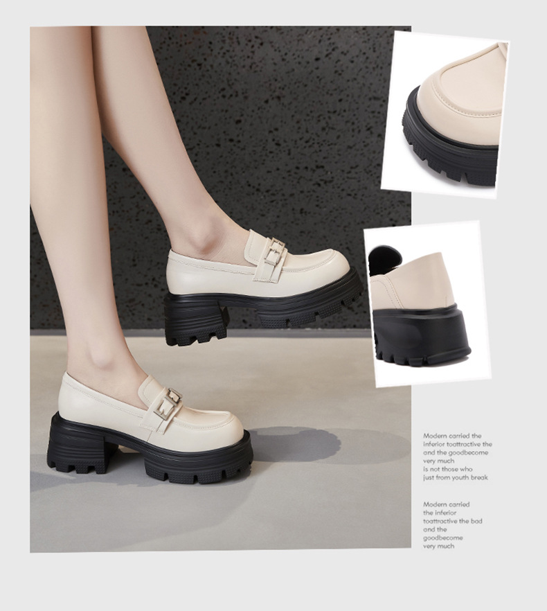 여성용 천연가죽 두꺼운 밑창 로퍼, 2025 봄 신상 여성화, 두꺼운 굽 싱글 슈즈, 다용도 영국 소형 가죽 신발스토어 가기