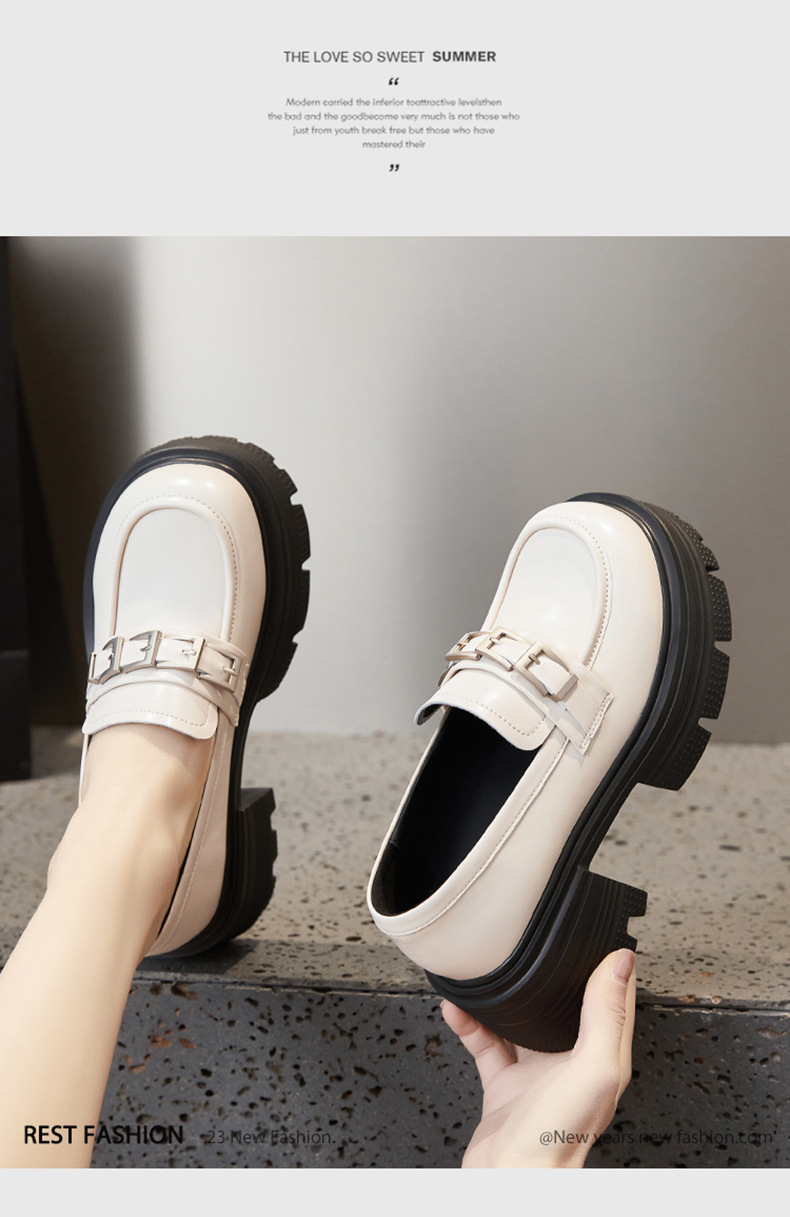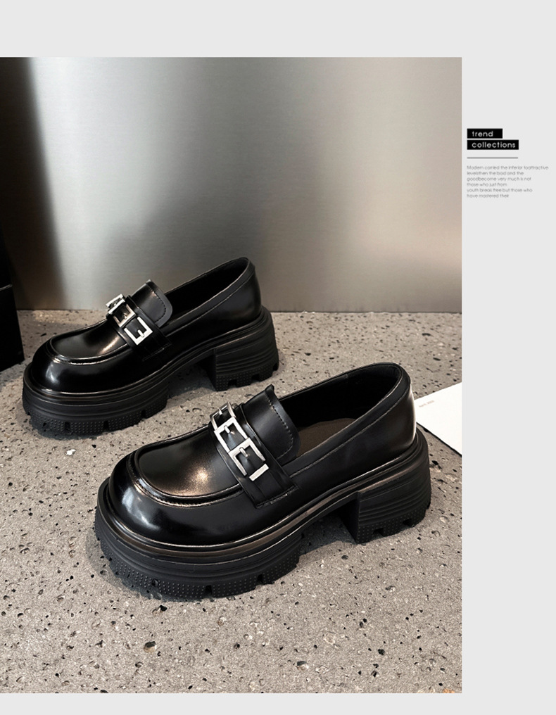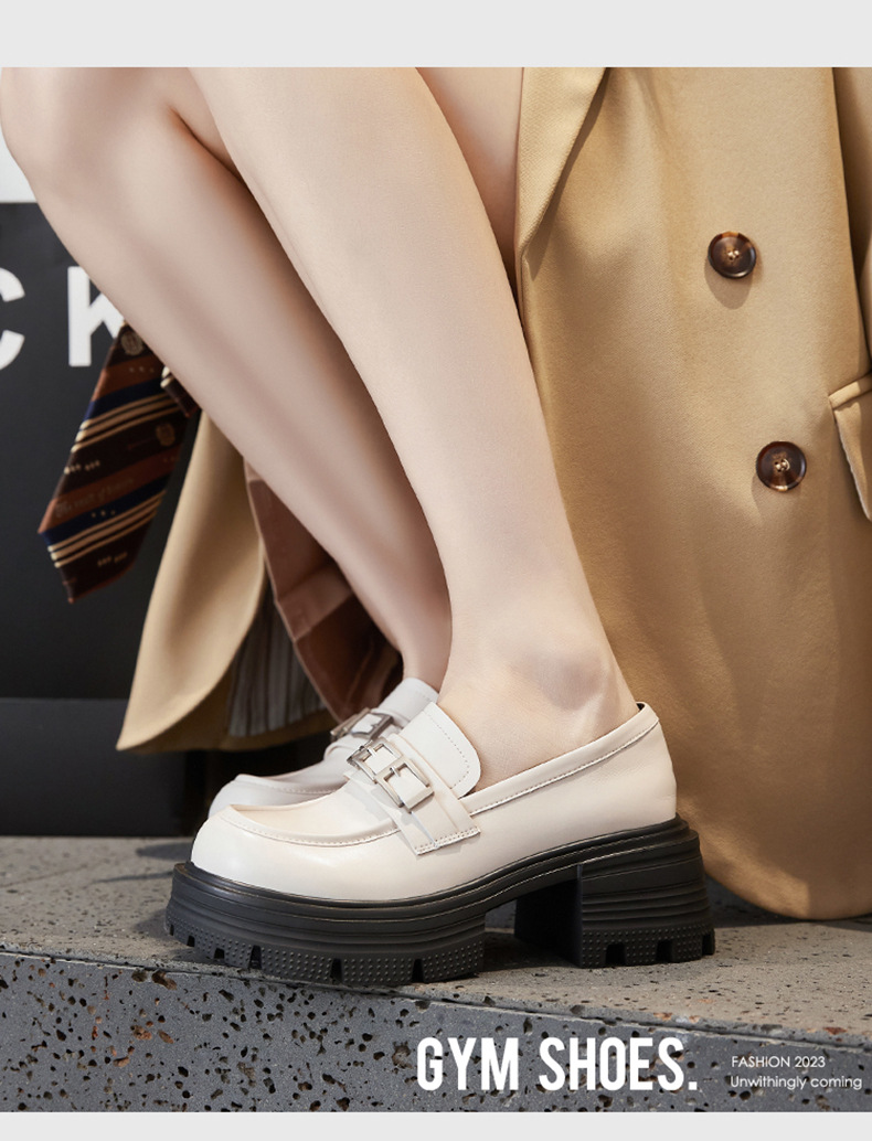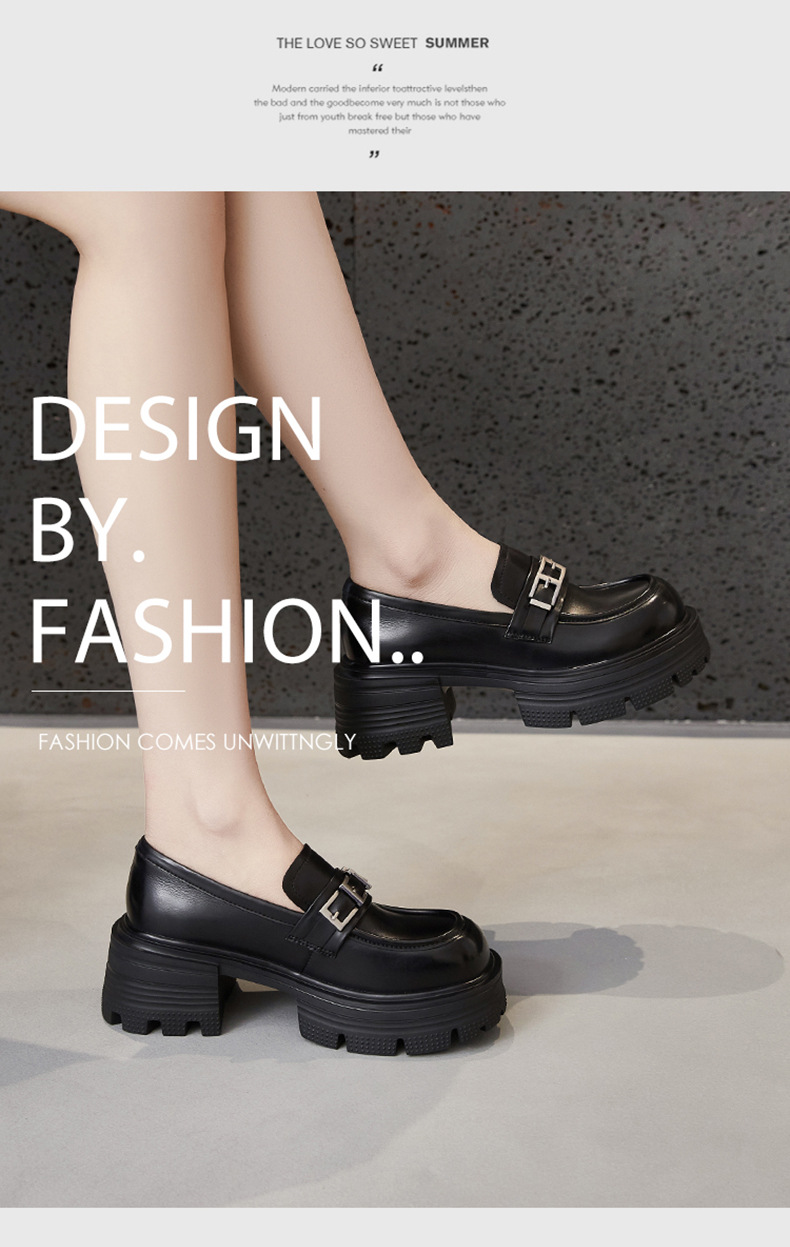 여성용 천연가죽 두꺼운 밑창 로퍼, 2025 봄 신상 여성화, 두꺼운 굽 싱글 슈즈, 다용도 영국 소형 가죽 신발스토어 가기
