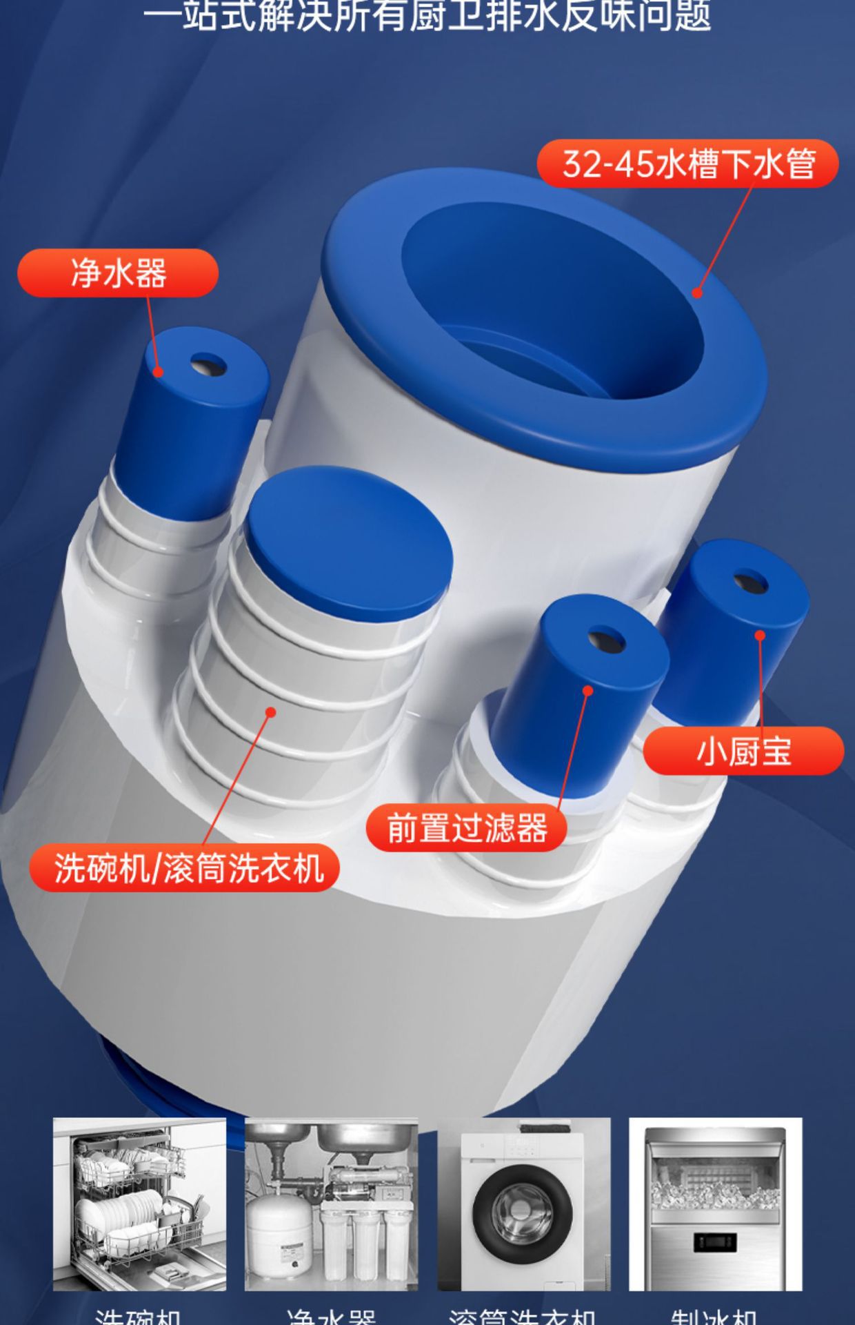 주방 다운 커머 3 헤드 헤드 주방 및 욕실 식기 세척기 싱크대 배수 다운 커머 파이프 다기능 탈취제 방지 유물스토어 가기