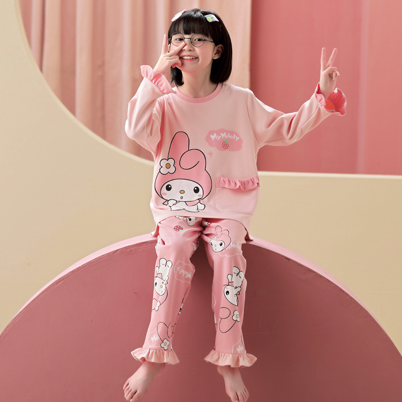 소녀 잠옷 봄과 가을 순면 2024 새로운 어린이 홈 착용 큰 어린이 소녀 가을과 겨울 홈 착용 긴 소매 세트