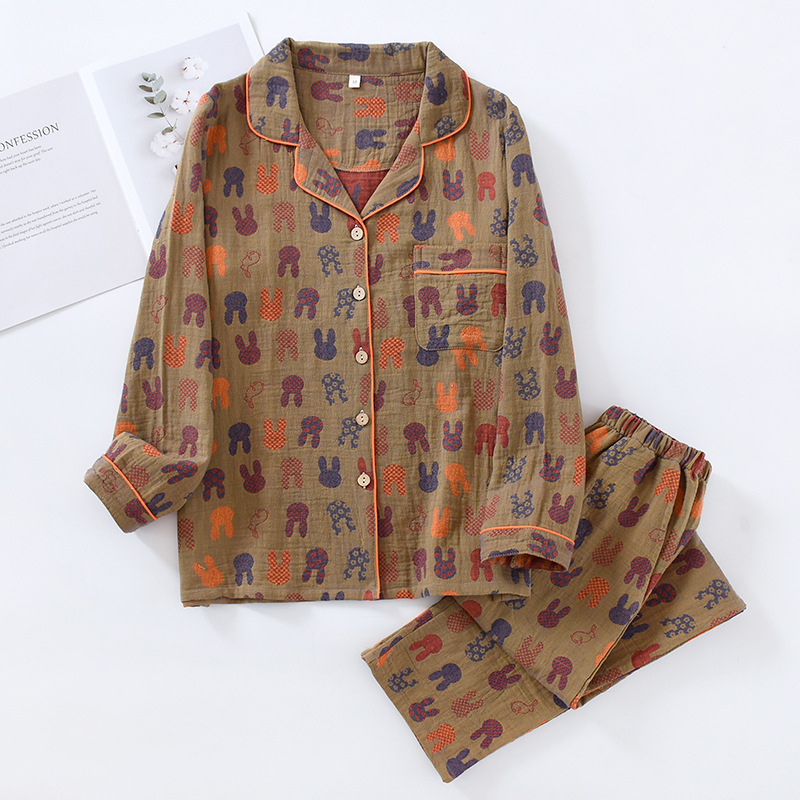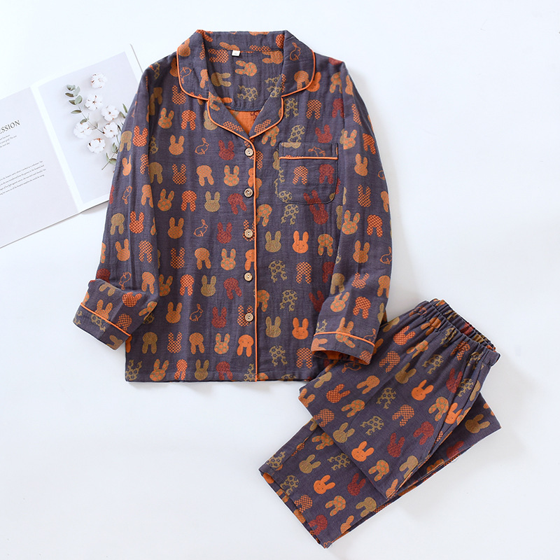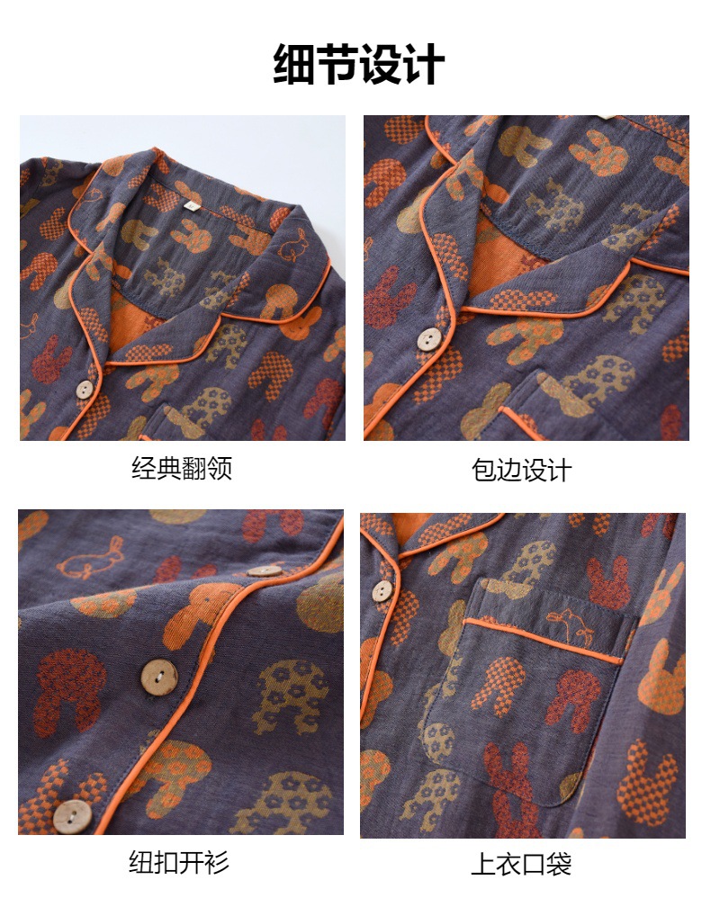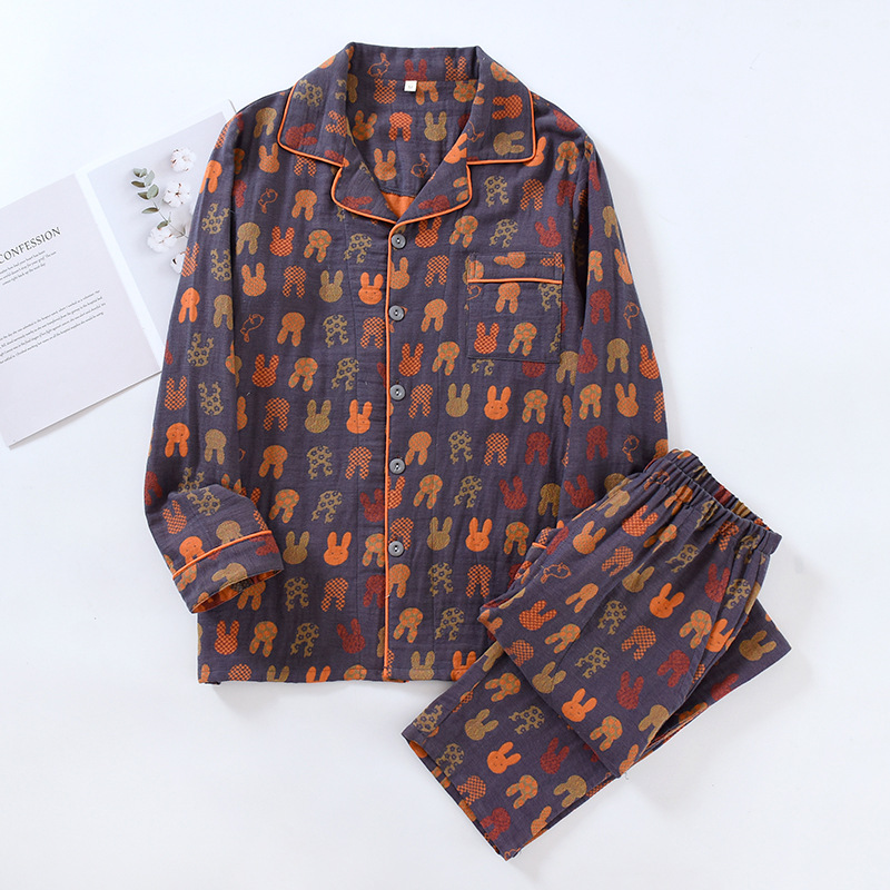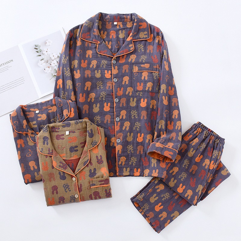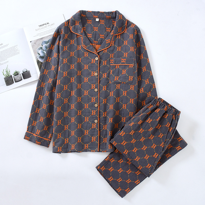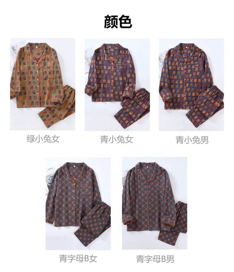 커플면 거즈 파자마 남성과 여성의 더블 레이어 면사 봄과 가을 여름 얇은 긴 소매 면 자카드 홈 웨어스토어 가기