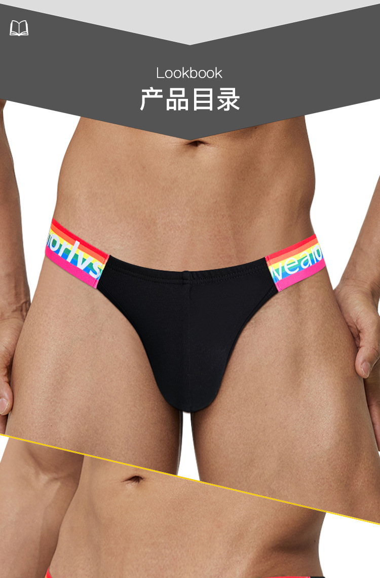 TEMU 새로운 높은 포크 레인보우 브리프 섹시한 낮은 허리 충격 볼록 가방면 통기성 OR674