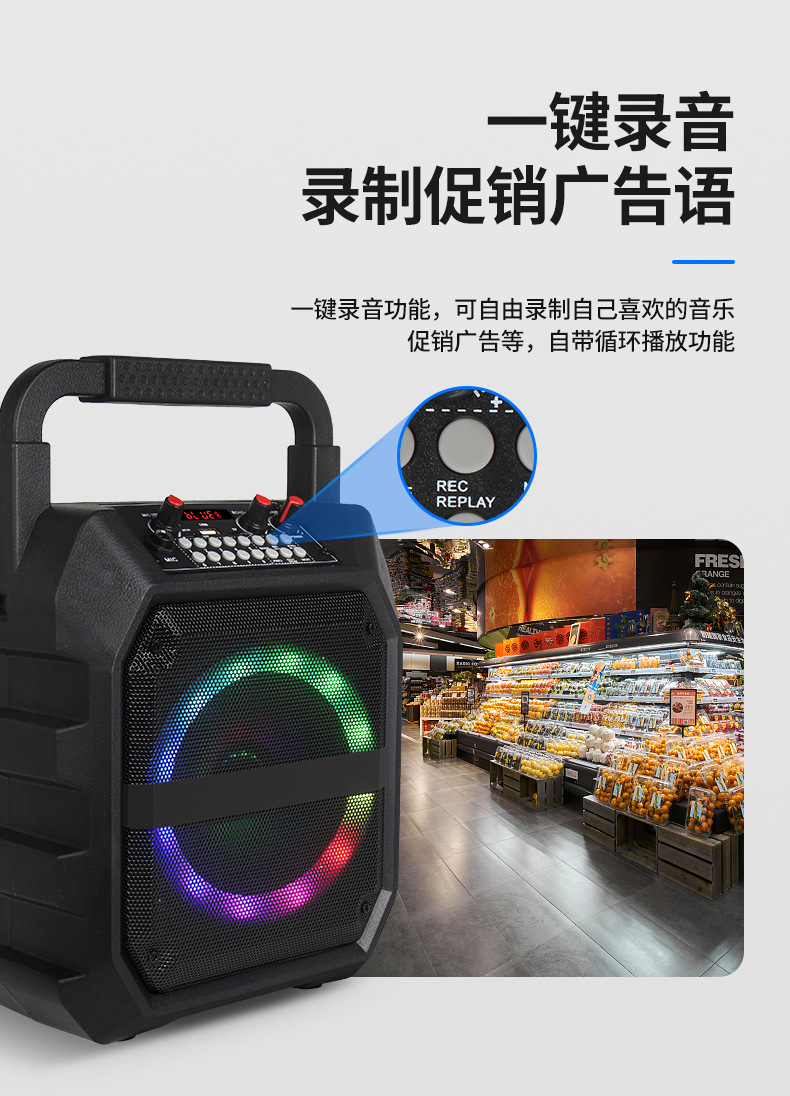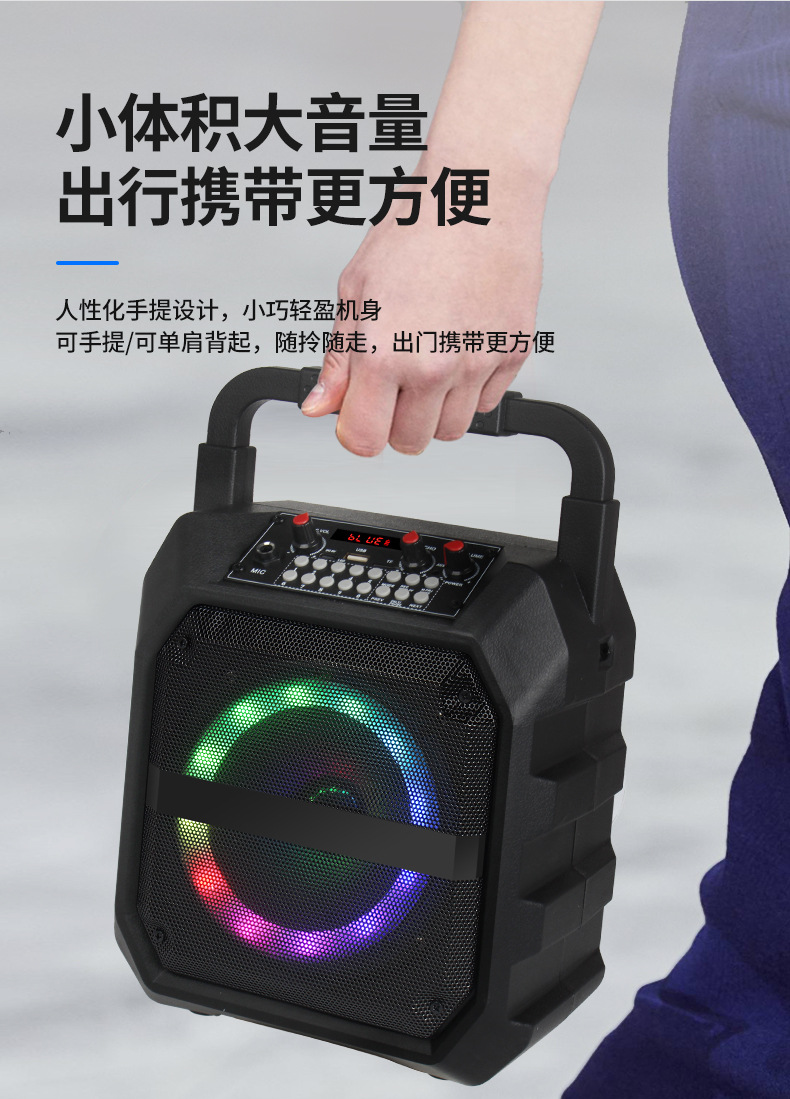 국경 간 인기있는 휴대용 오디오 사운드 카드 특수 효과 야외 노래방 마이크 통합 블루투스 스피커스토어 가기
