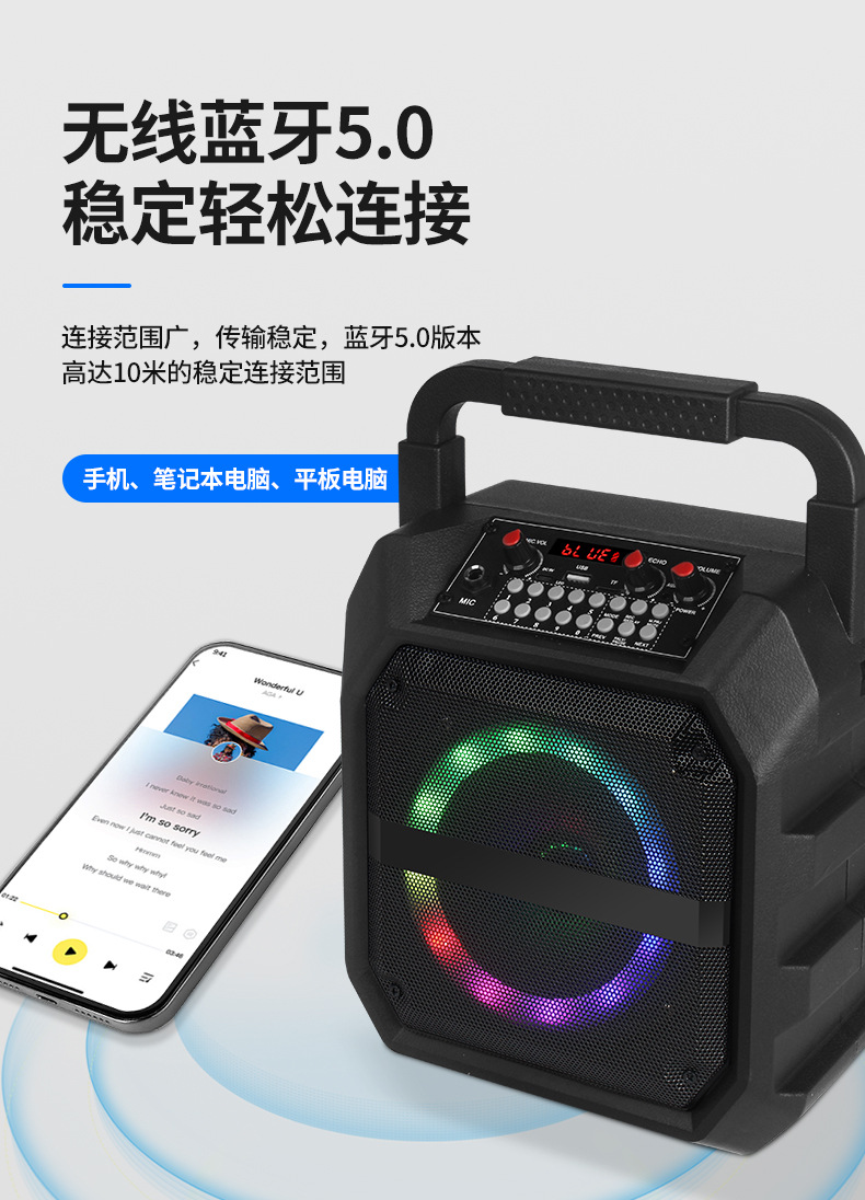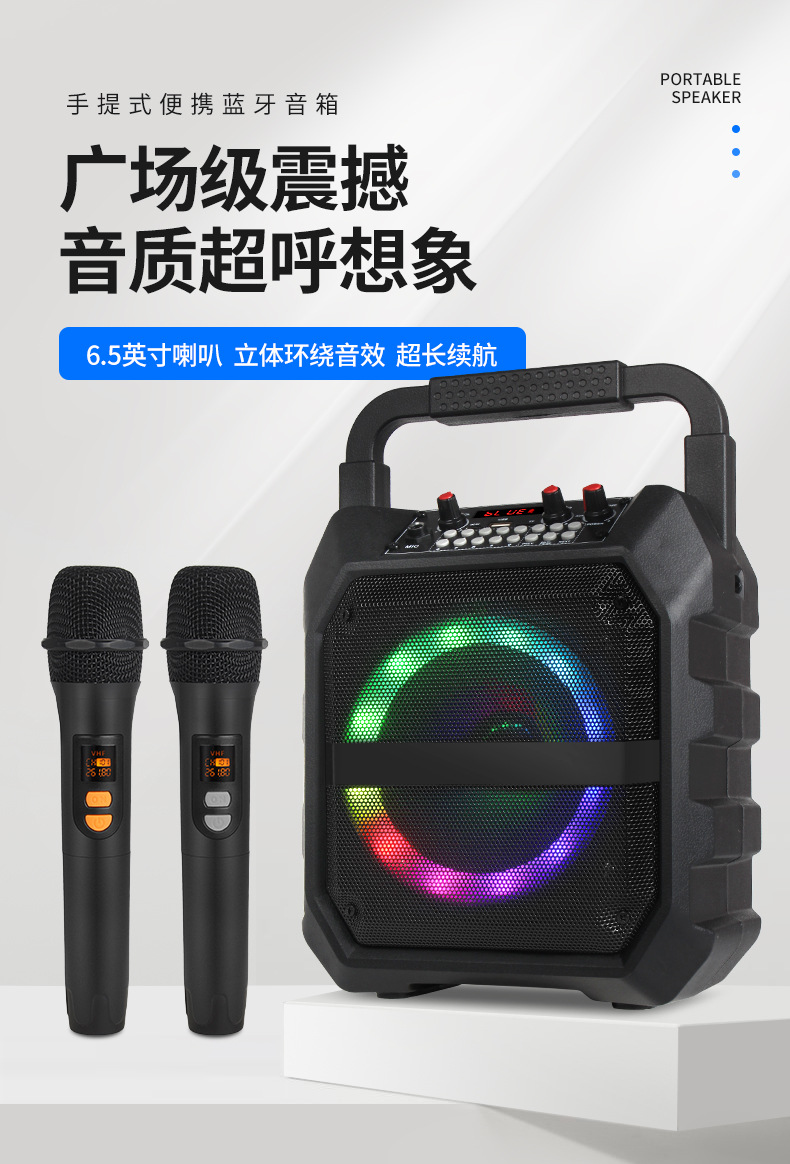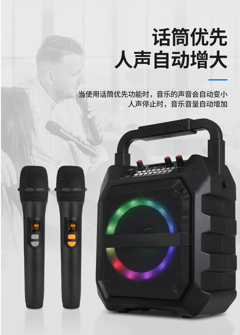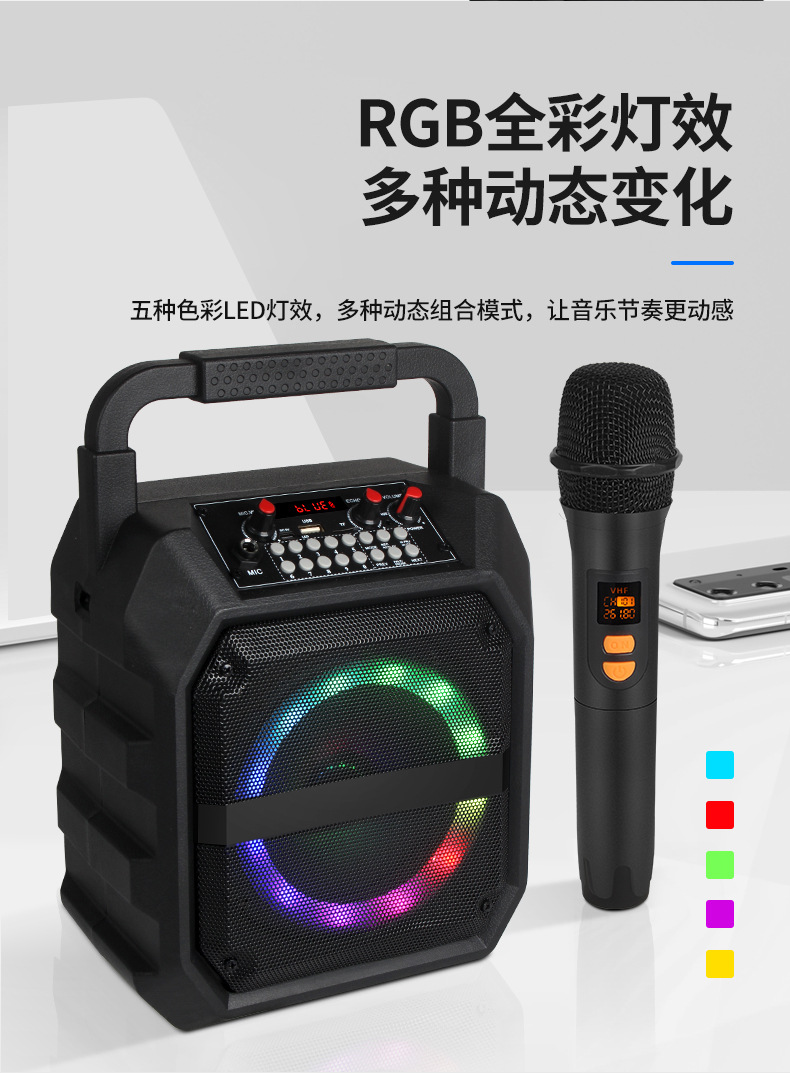 국경 간 인기있는 휴대용 오디오 사운드 카드 특수 효과 야외 노래방 마이크 통합 블루투스 스피커