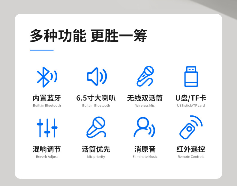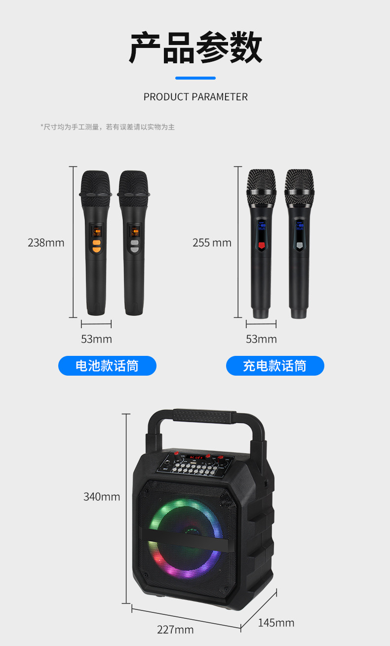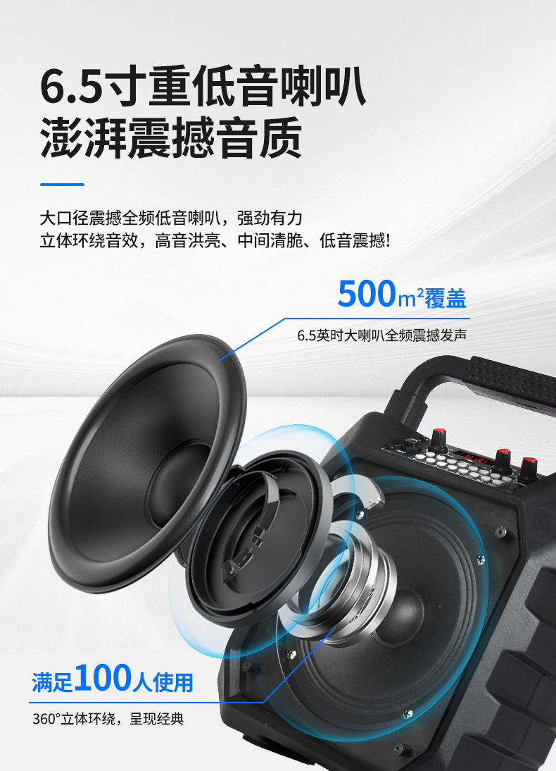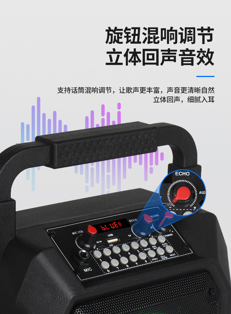 국경 간 인기있는 휴대용 오디오 사운드 카드 특수 효과 야외 노래방 마이크 통합 블루투스 스피커