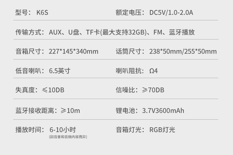 • K6S 일반 버전(AA 배터리용 마이크)