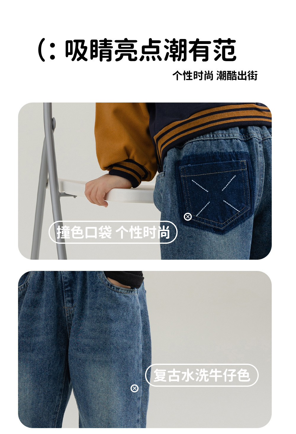 남아용 다용도 스트레이트 캐주얼 팬츠 어린이 긴바지 배색 포켓 데님 팬츠 아동 바지 QK83001