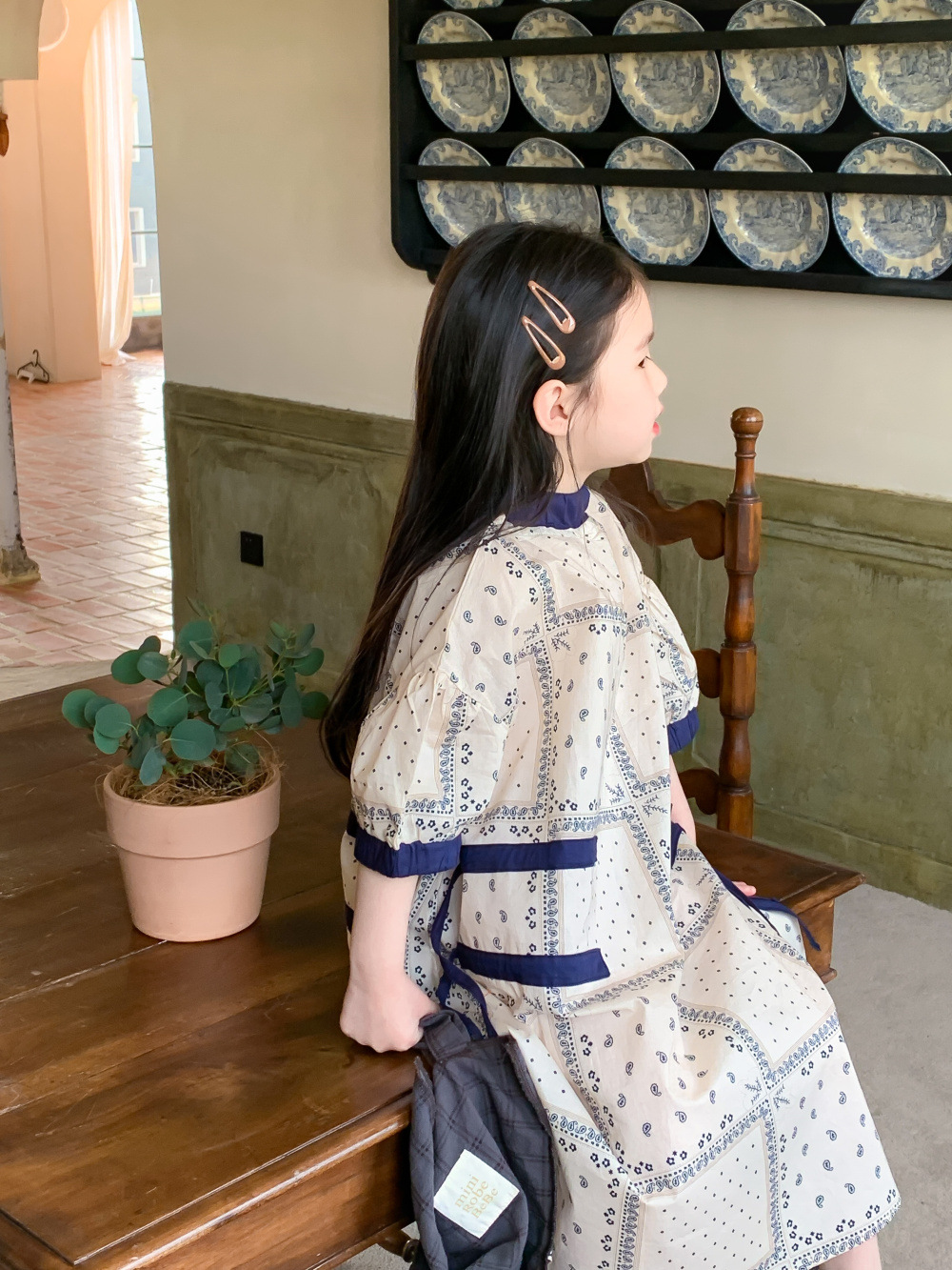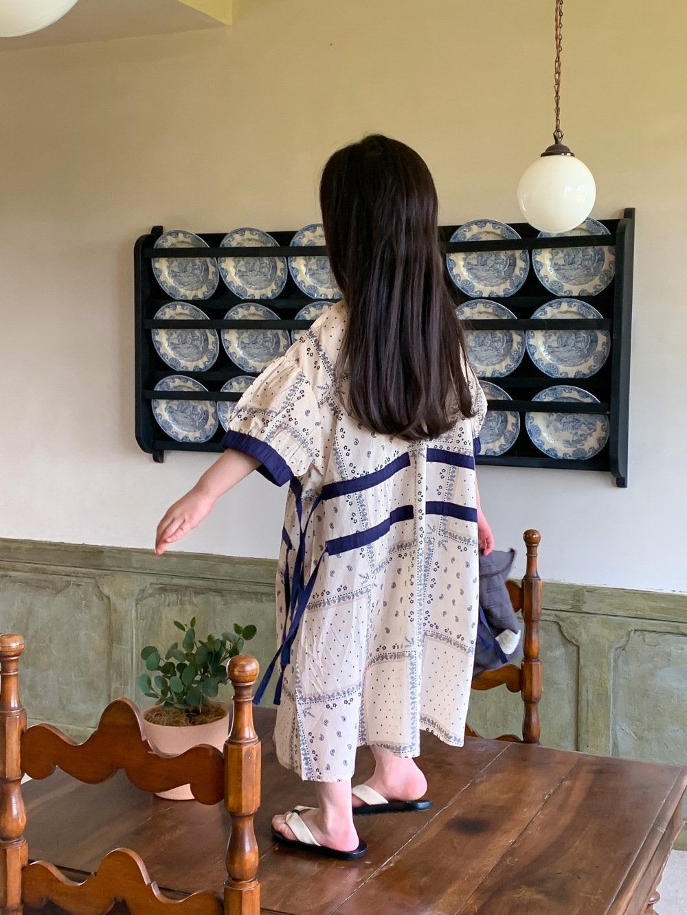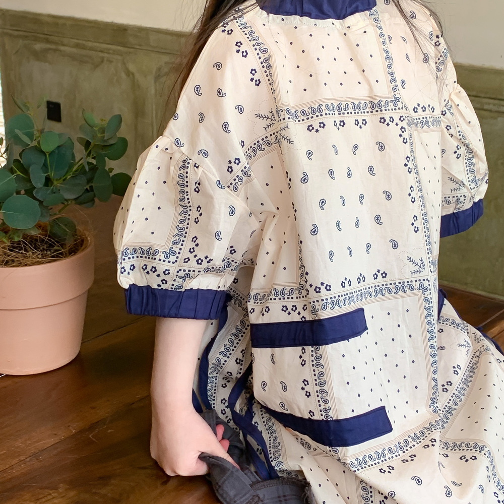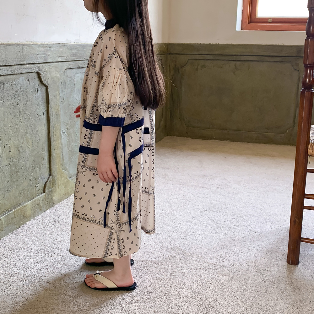 2024 년 여름 어린이 원피스 소녀 꽃 민족 스타일 한국 스타일 귀여운 한국 스타일 그린 스트링 원피스 긴 원피스스토어 가기