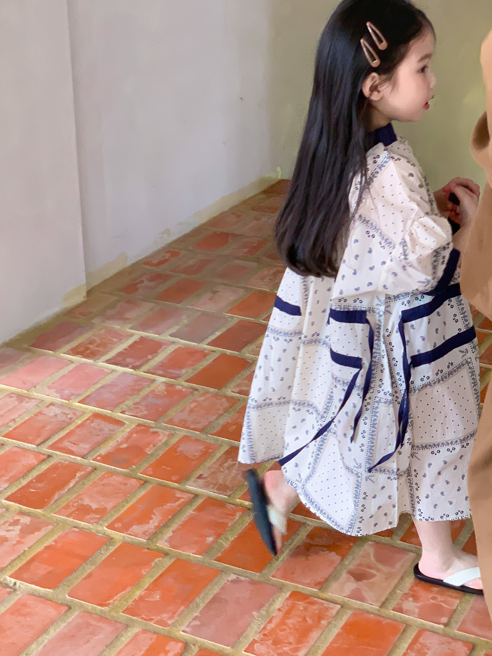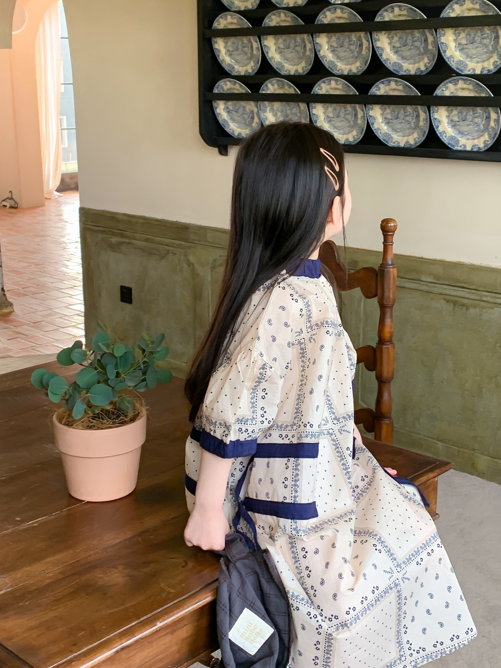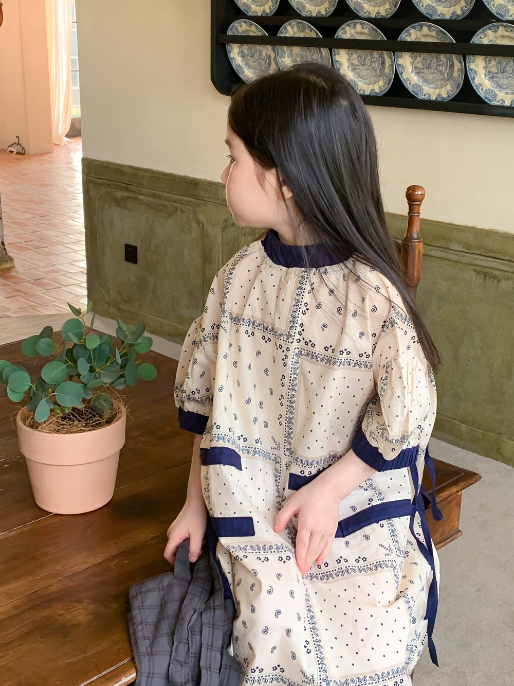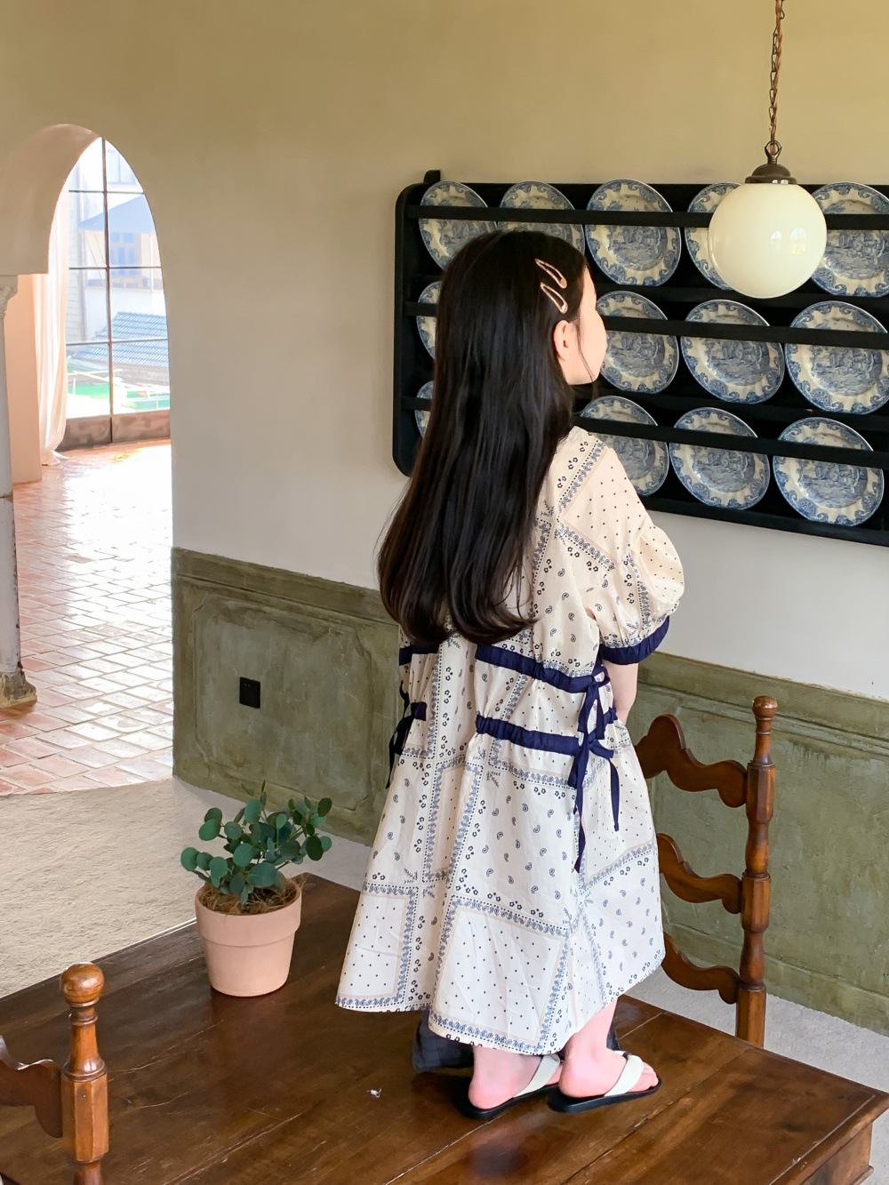 2024 년 여름 어린이 원피스 소녀 꽃 민족 스타일 한국 스타일 귀여운 한국 스타일 그린 스트링 원피스 긴 원피스스토어 가기
