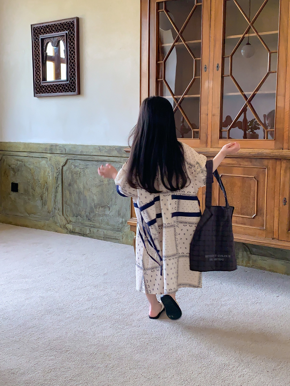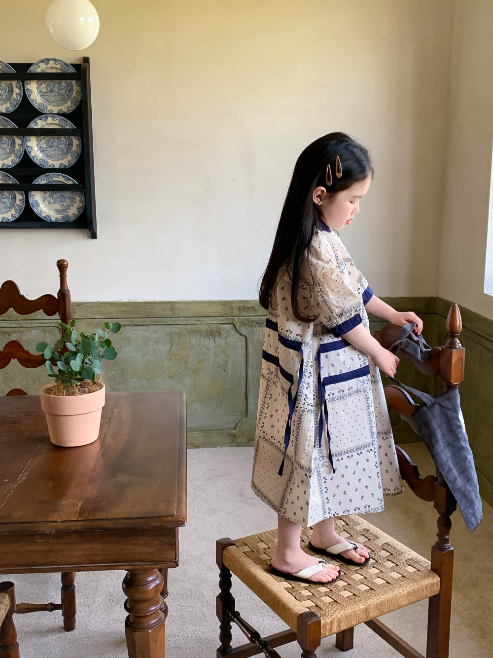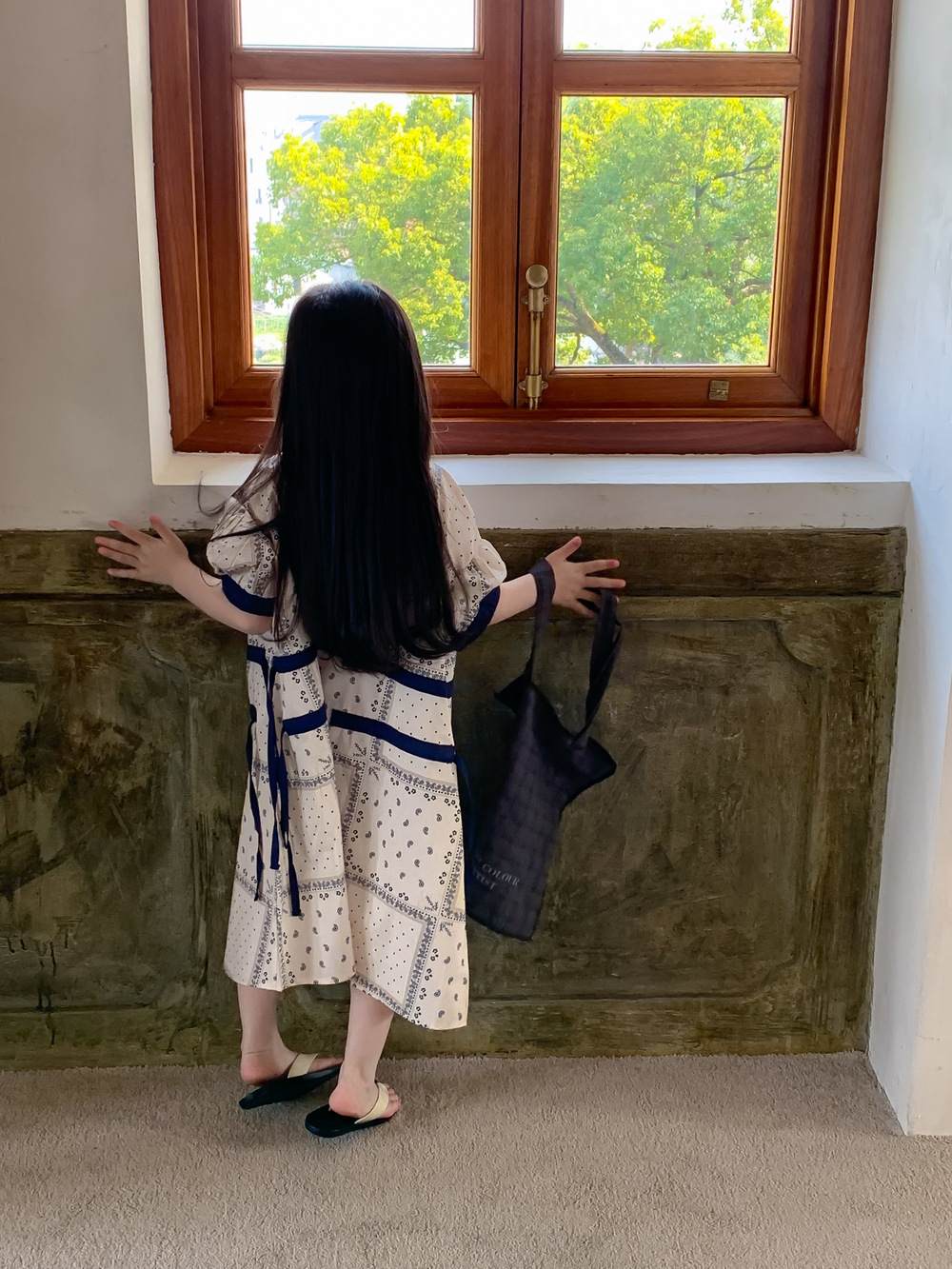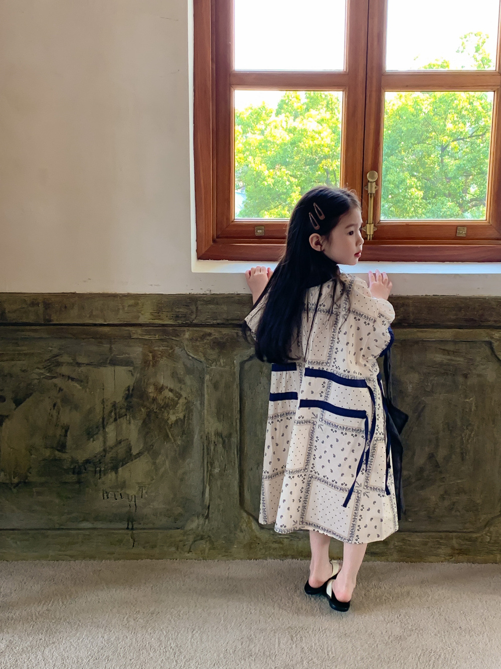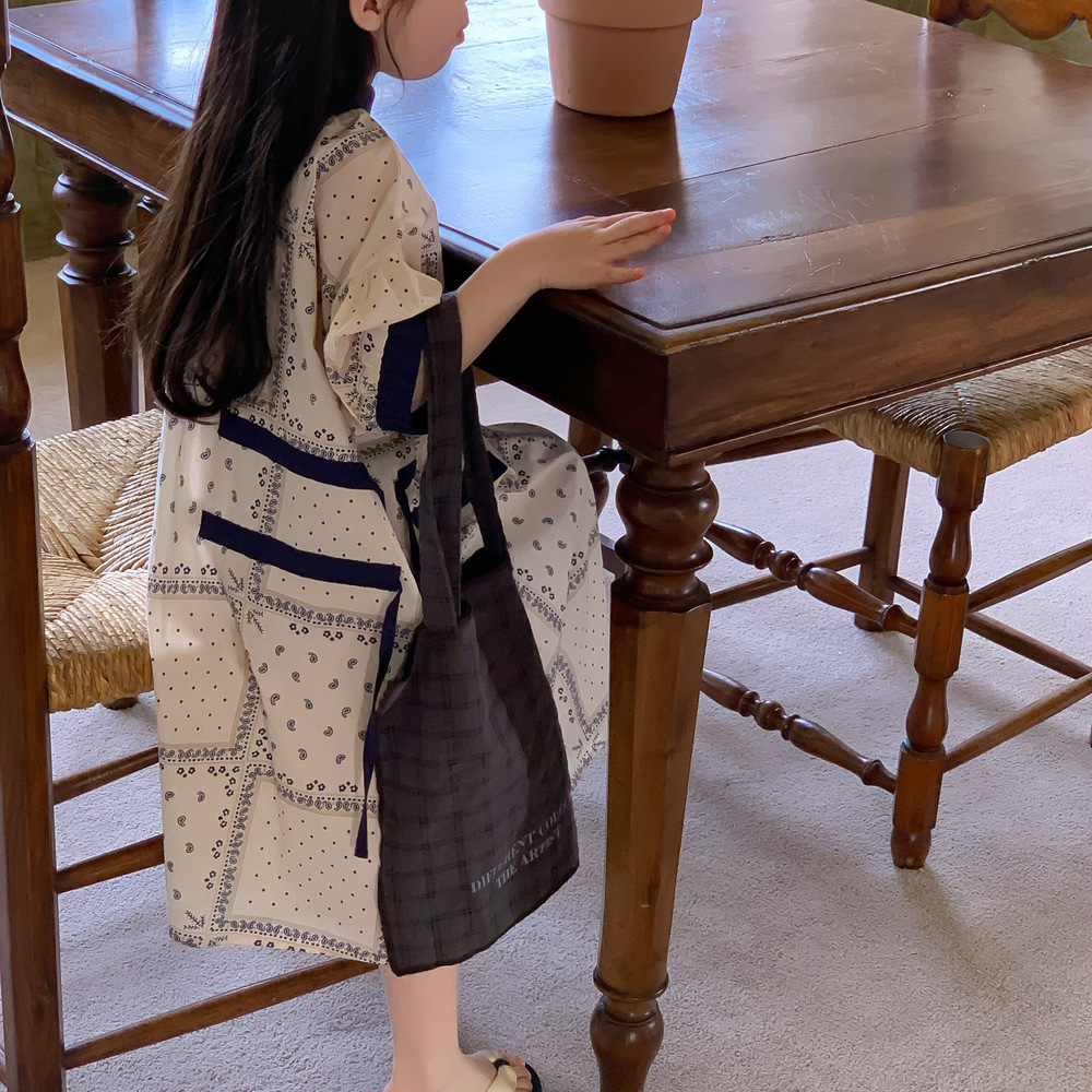 2024 년 여름 어린이 원피스 소녀 꽃 민족 스타일 한국 스타일 귀여운 한국 스타일 그린 스트링 원피스 긴 원피스
