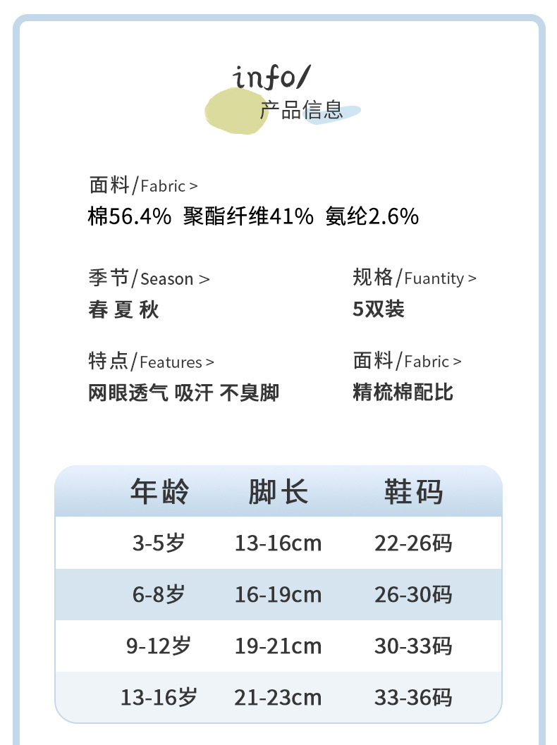 2024 봄 새로운 소년 메쉬 봄과 가을 얇은 만화 면 양말