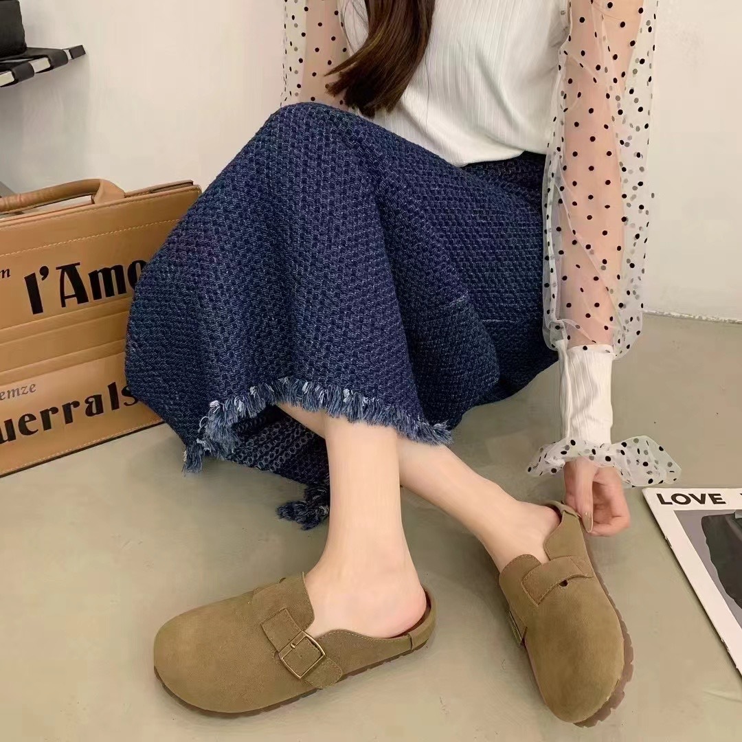 빈티지 패션 Baotou Bocon 신발 반 지원 야외 착용 슬리퍼 플랫 신발 콩 신발 게으른 신발 여성 신발 2130-2스토어 가기