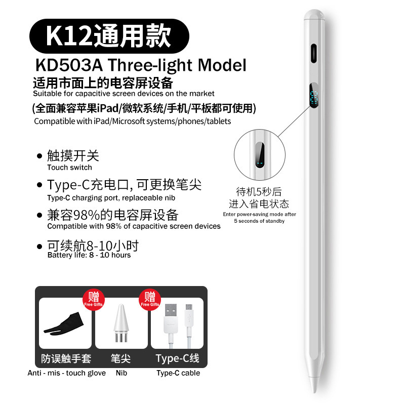 • K12 전원 디지털 디스플레이 범용 모델 [무료 안티 터치 장갑 * 1 + 펜 팁 * 1 + TC 케이블]]