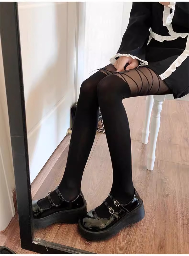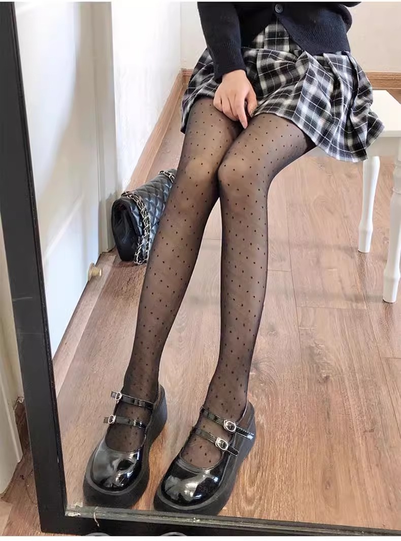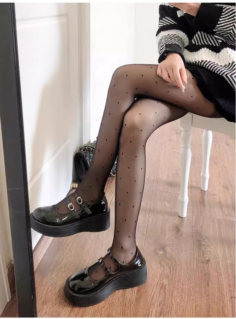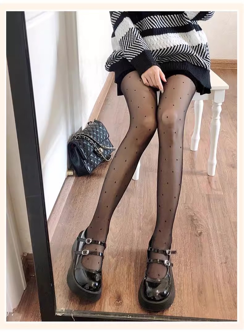 초박형 슬리밍 섹시한 팬티 스타킹 일본 jk 블랙 실크 블랙 폴카 도트 스타킹 여성의 봄과 여름 얇은 사랑 바닥 양말스토어 가기