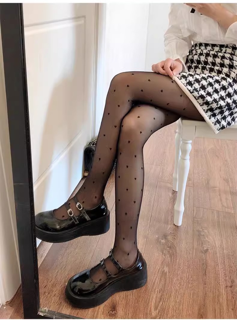 초박형 슬리밍 섹시한 팬티 스타킹 일본 jk 블랙 실크 블랙 폴카 도트 스타킹 여성의 봄과 여름 얇은 사랑 바닥 양말