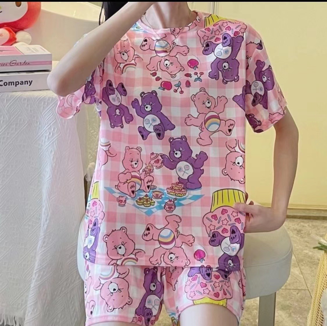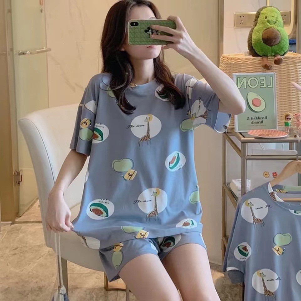 여성용 스팟 잠옷, 루즈하고 캐주얼하며 편안한 여름 신작 반팔 반바지, 여성용 귀여운 만화 홈웨어 세트스토어 가기
