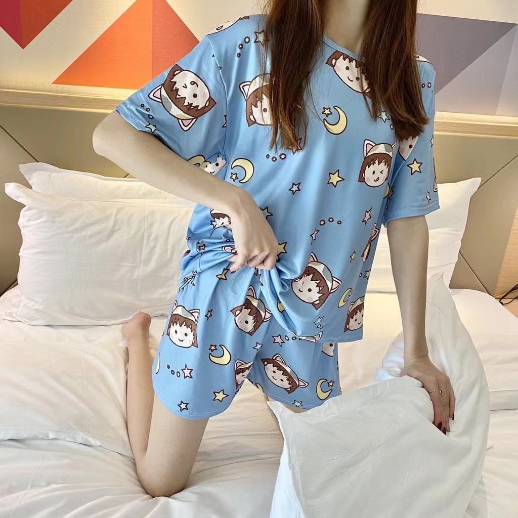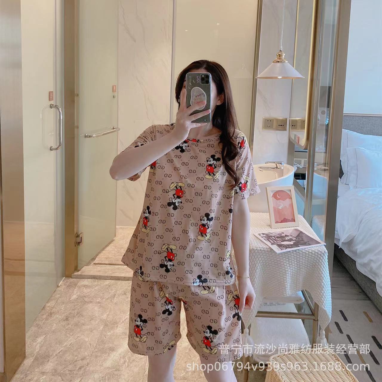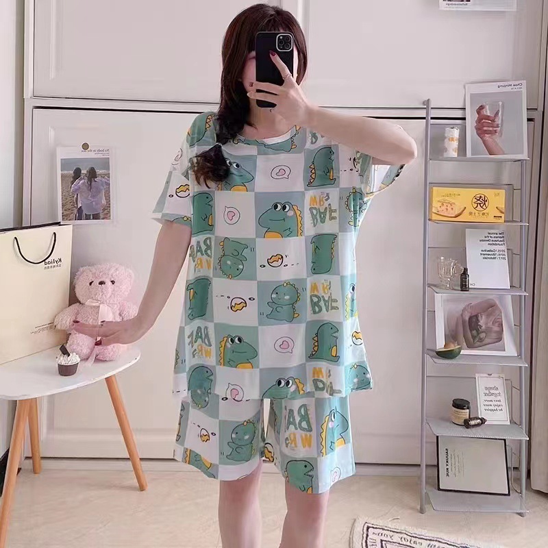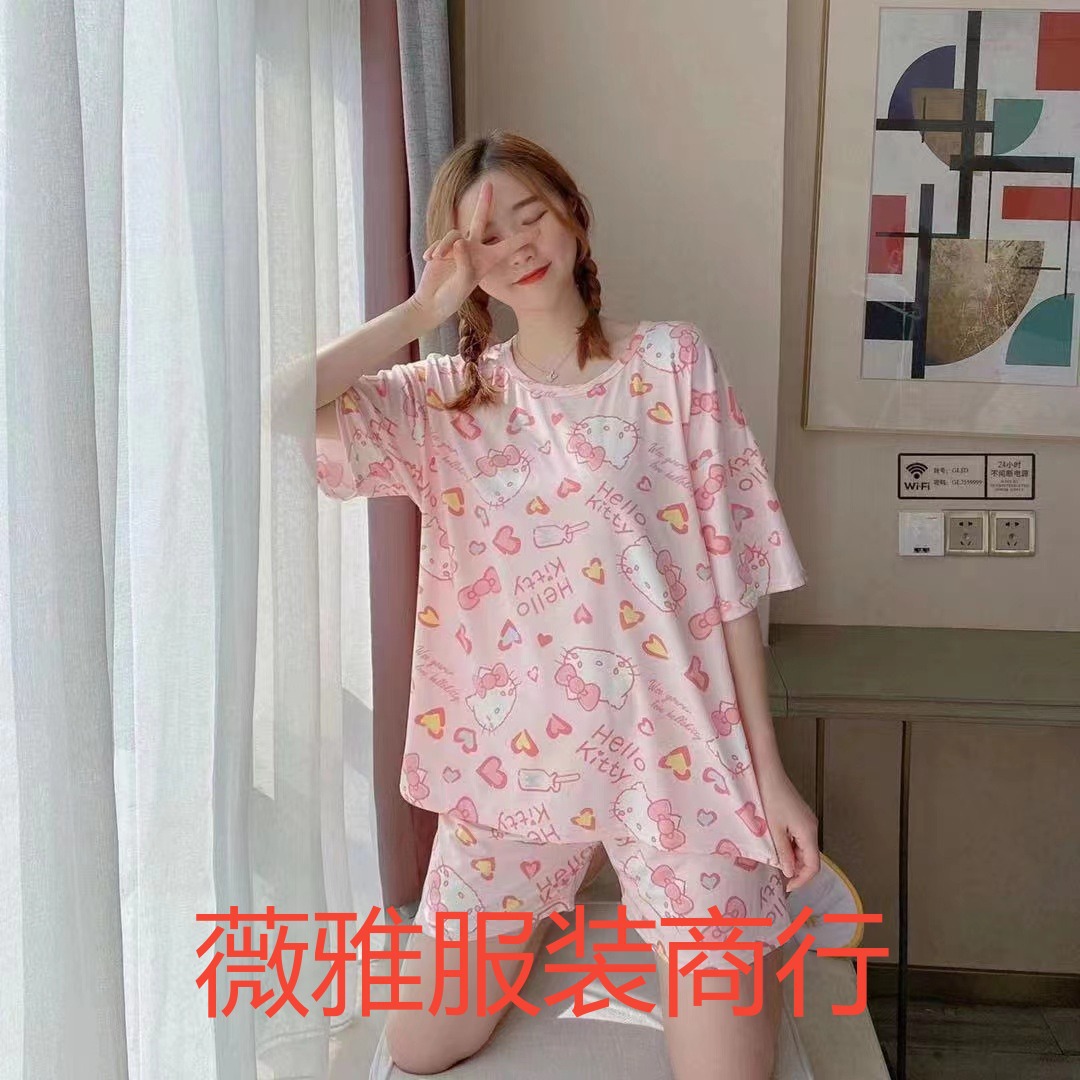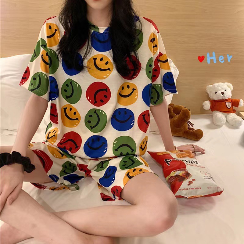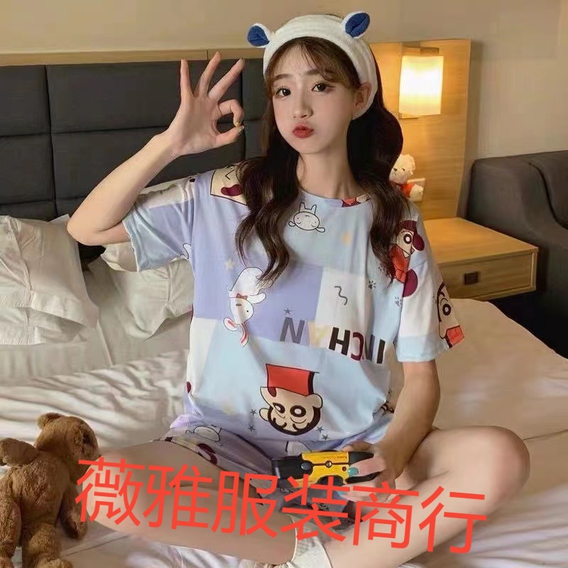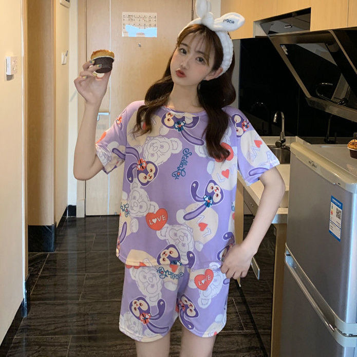 여성용 스팟 잠옷, 루즈하고 캐주얼하며 편안한 여름 신작 반팔 반바지, 여성용 귀여운 만화 홈웨어 세트