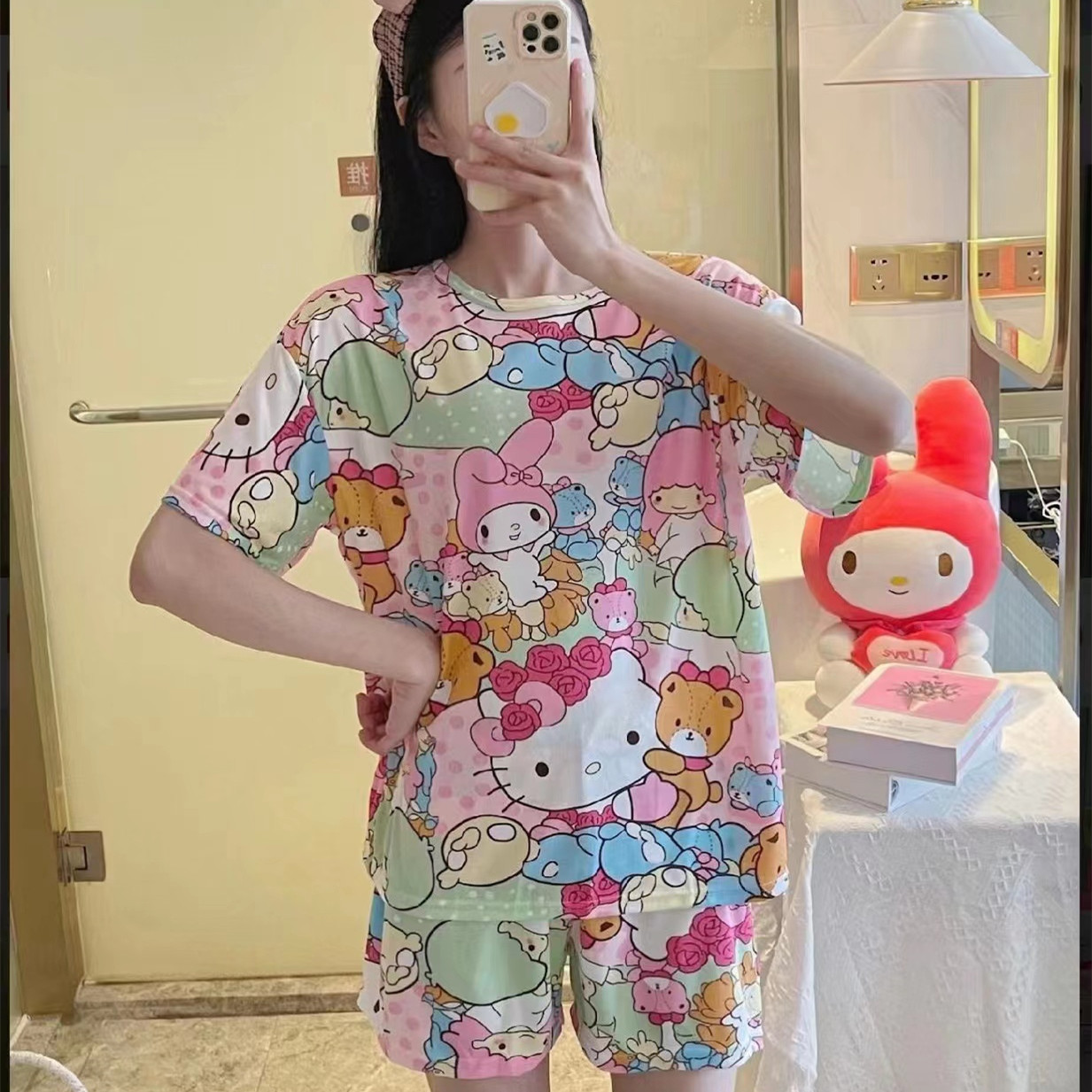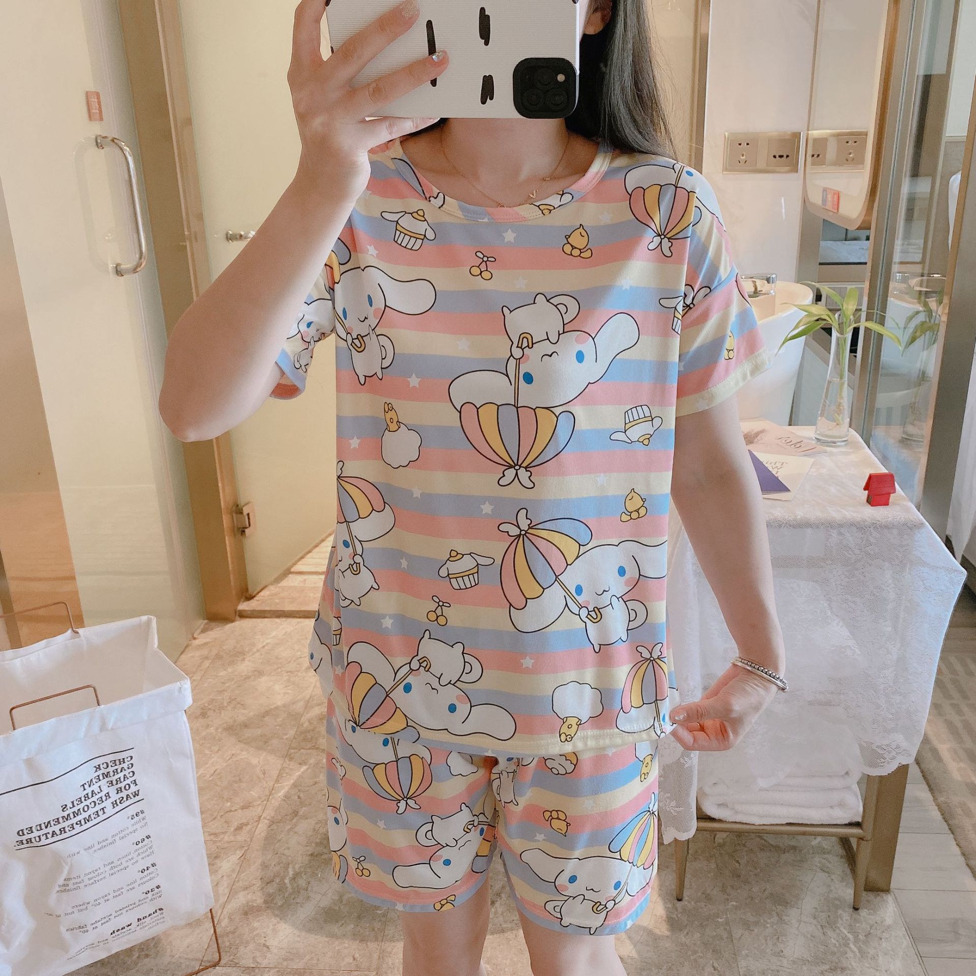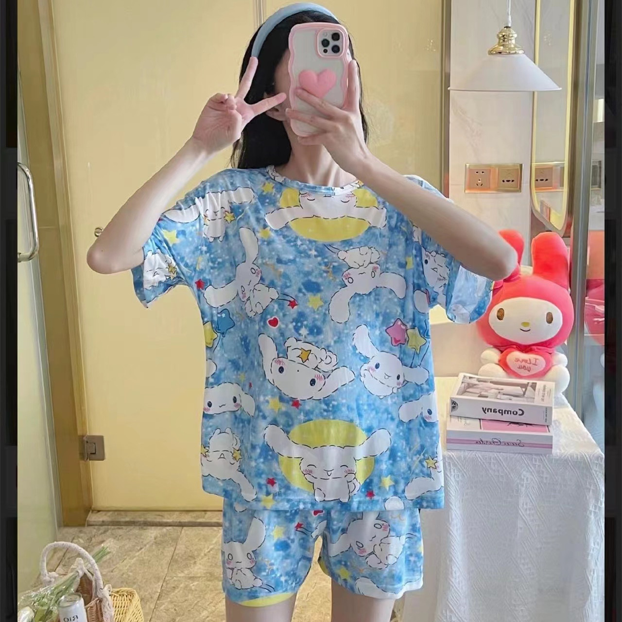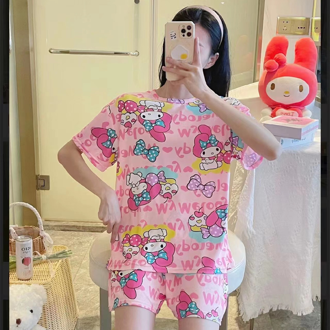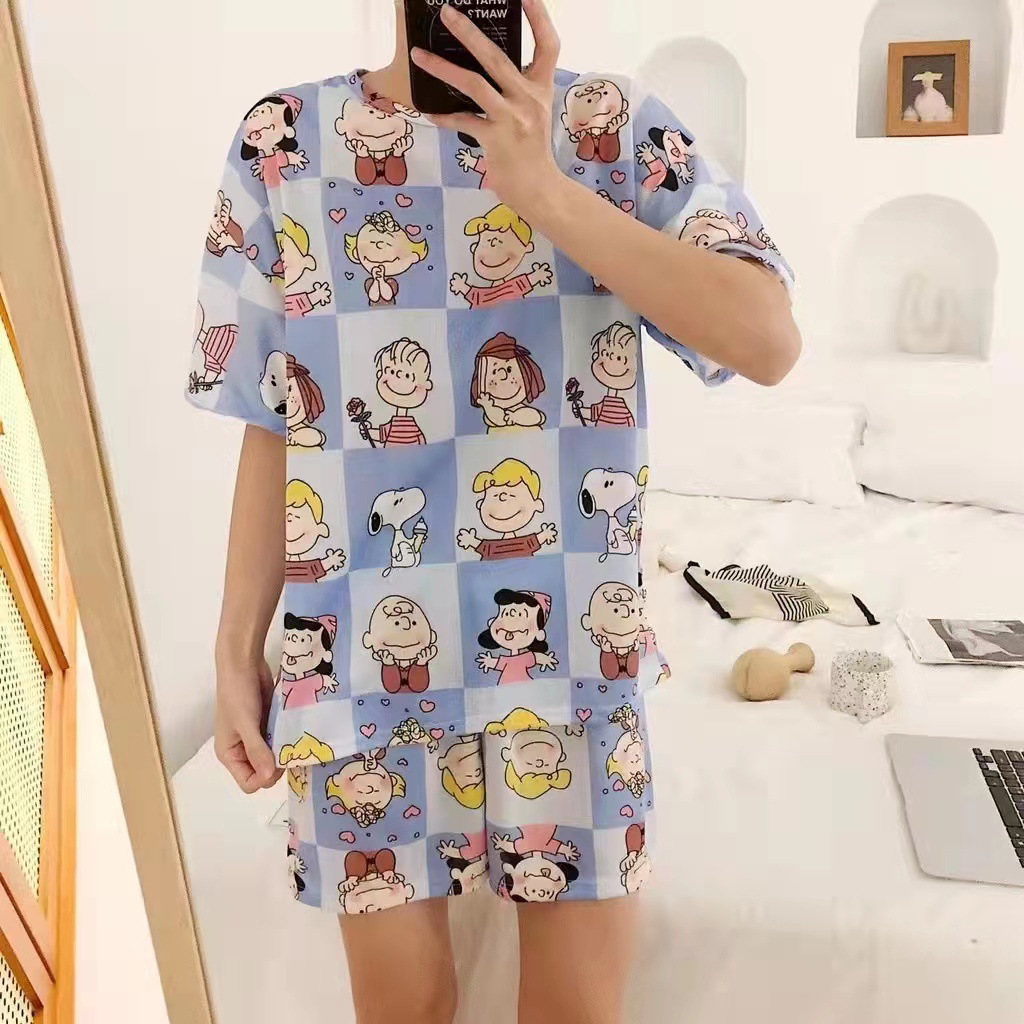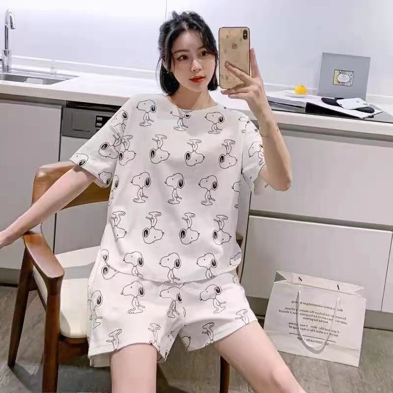 여성용 스팟 잠옷, 루즈하고 캐주얼하며 편안한 여름 신작 반팔 반바지, 여성용 귀여운 만화 홈웨어 세트