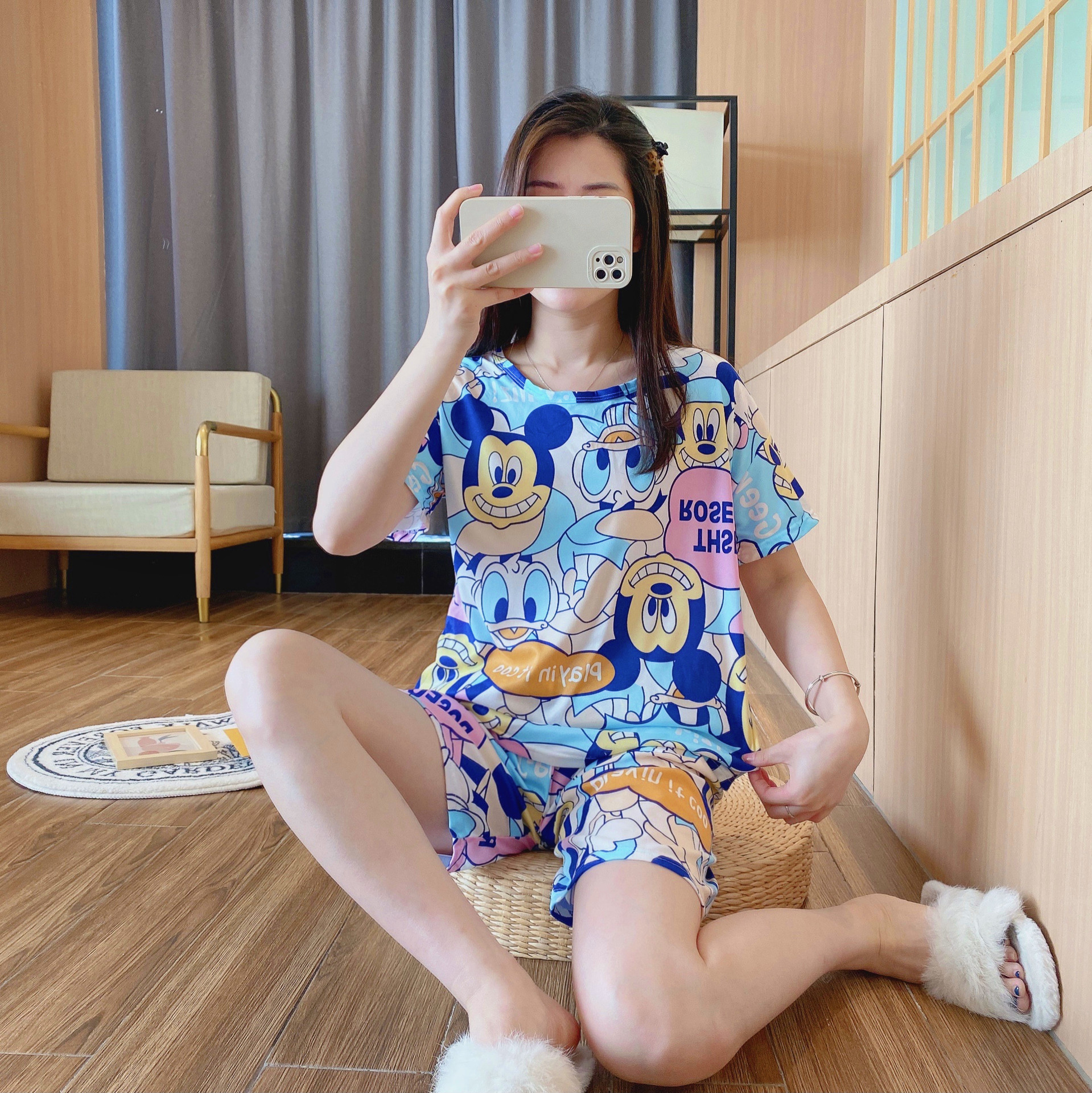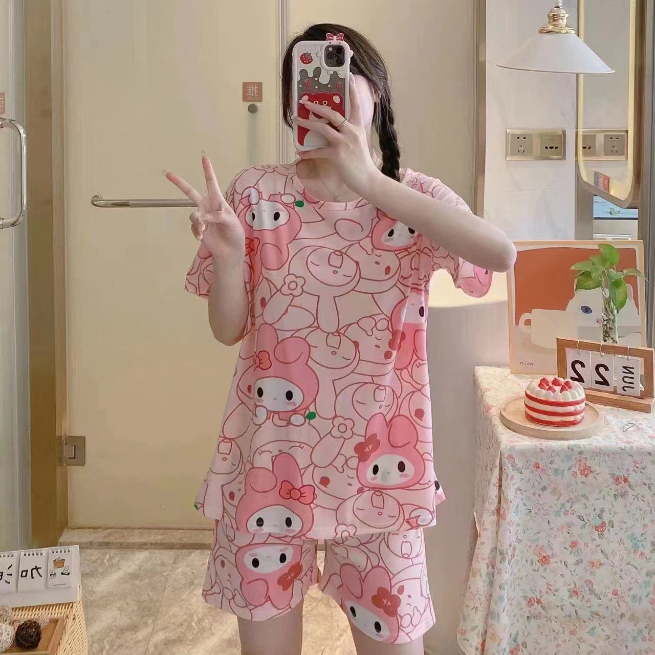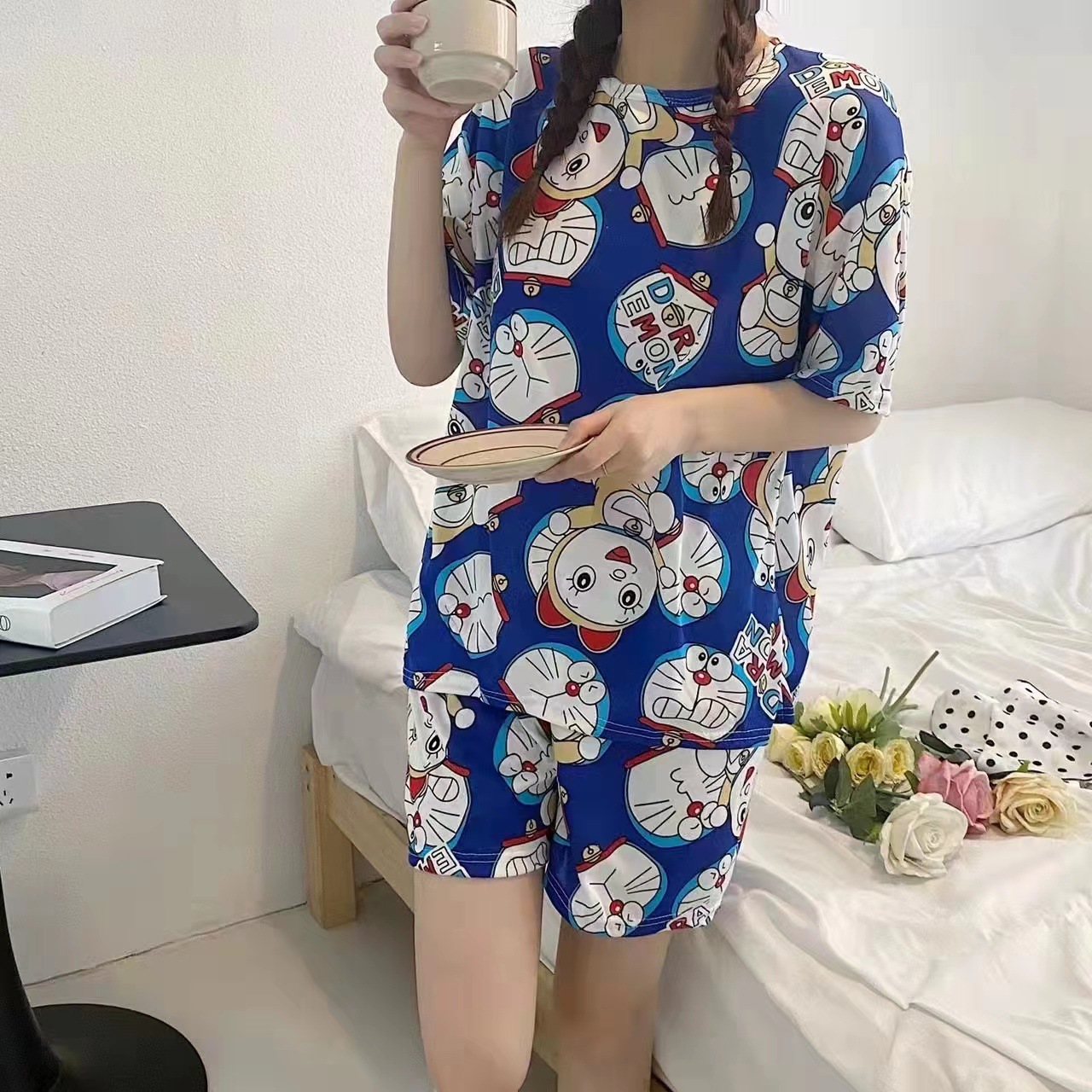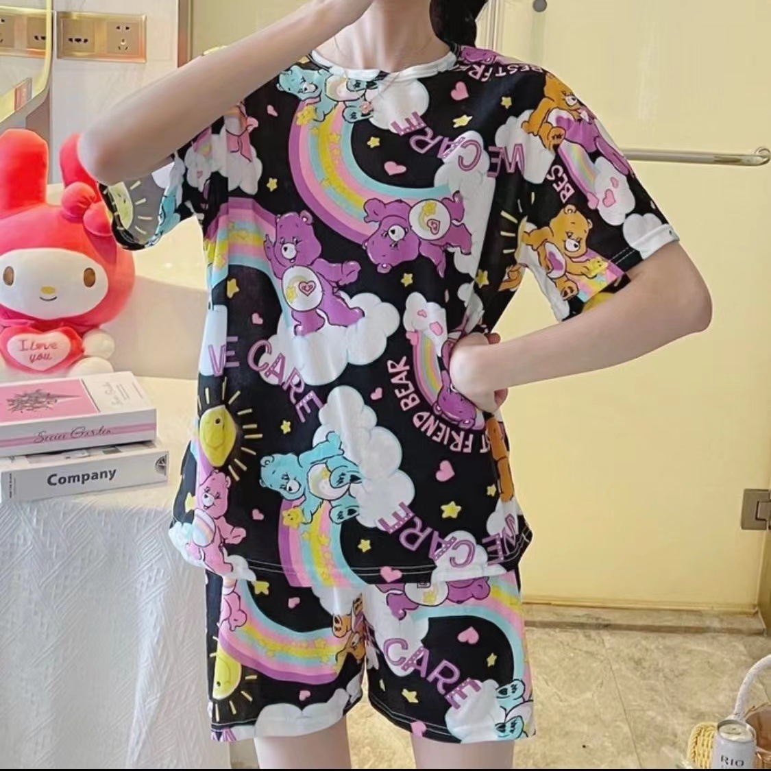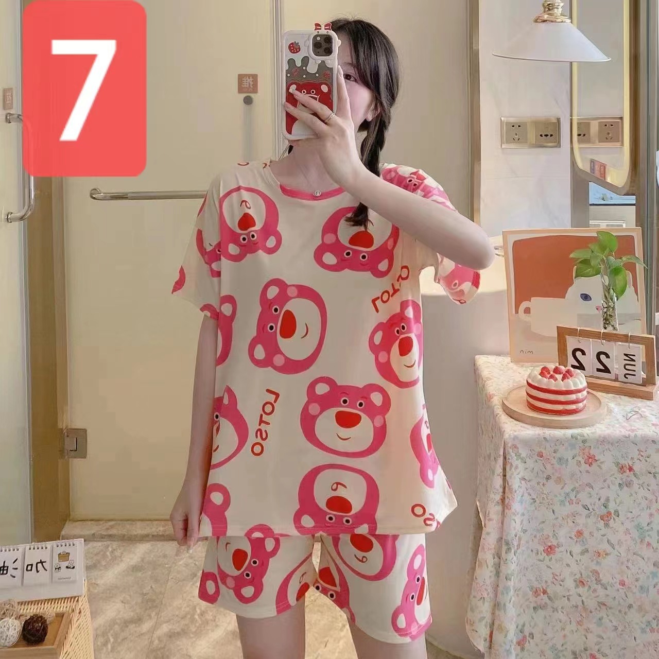 여성용 스팟 잠옷, 루즈하고 캐주얼하며 편안한 여름 신작 반팔 반바지, 여성용 귀여운 만화 홈웨어 세트