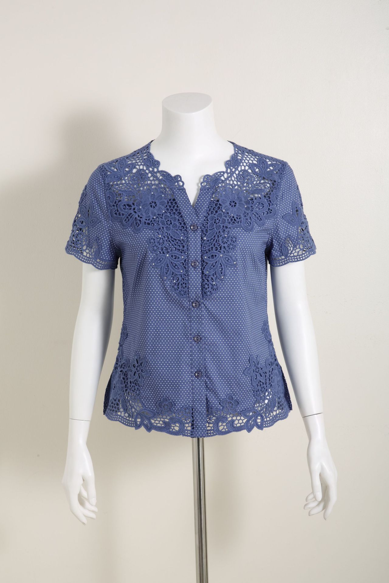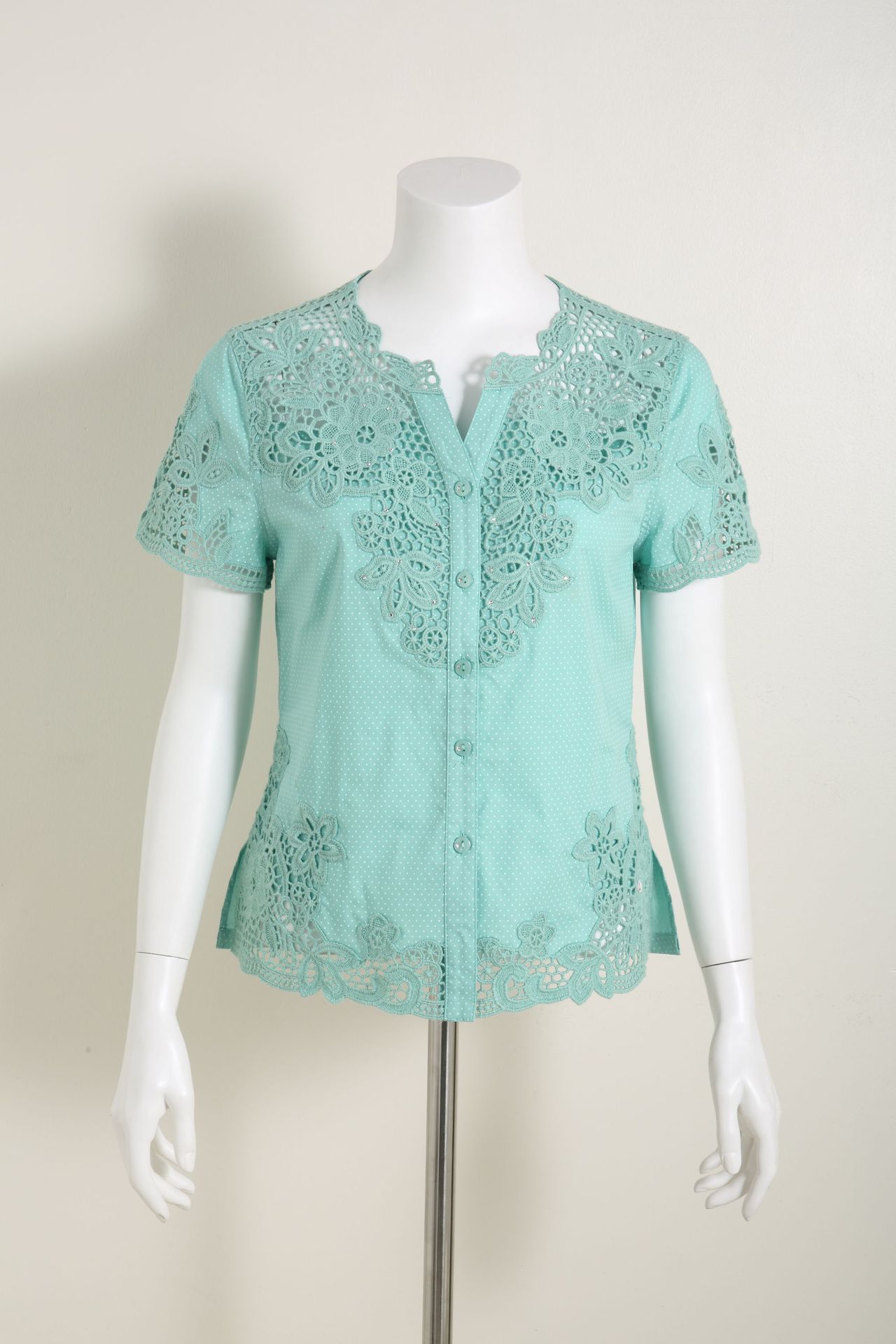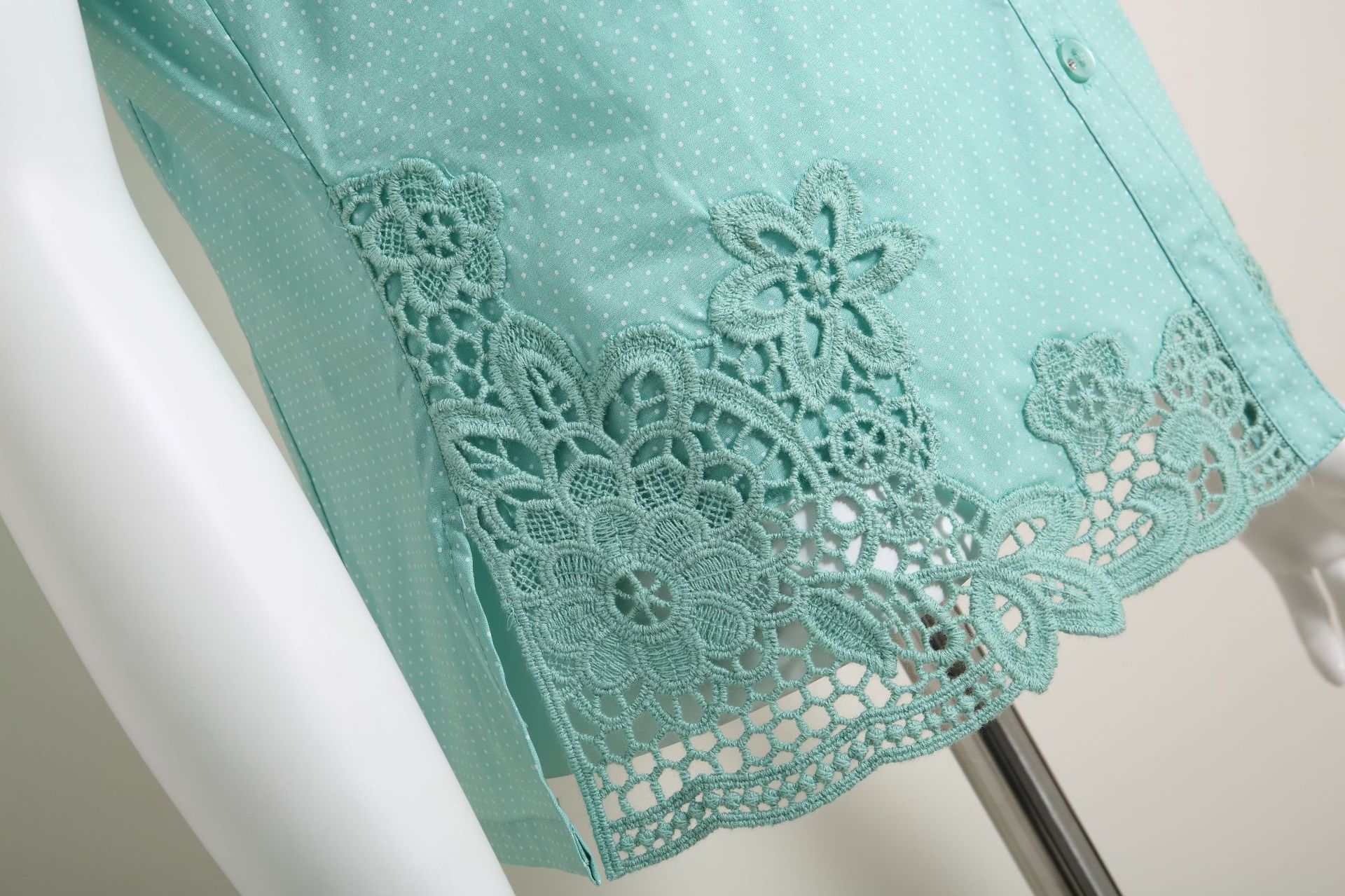 수용성 자수 패치 워크 도트 쉬폰 셔츠 9987