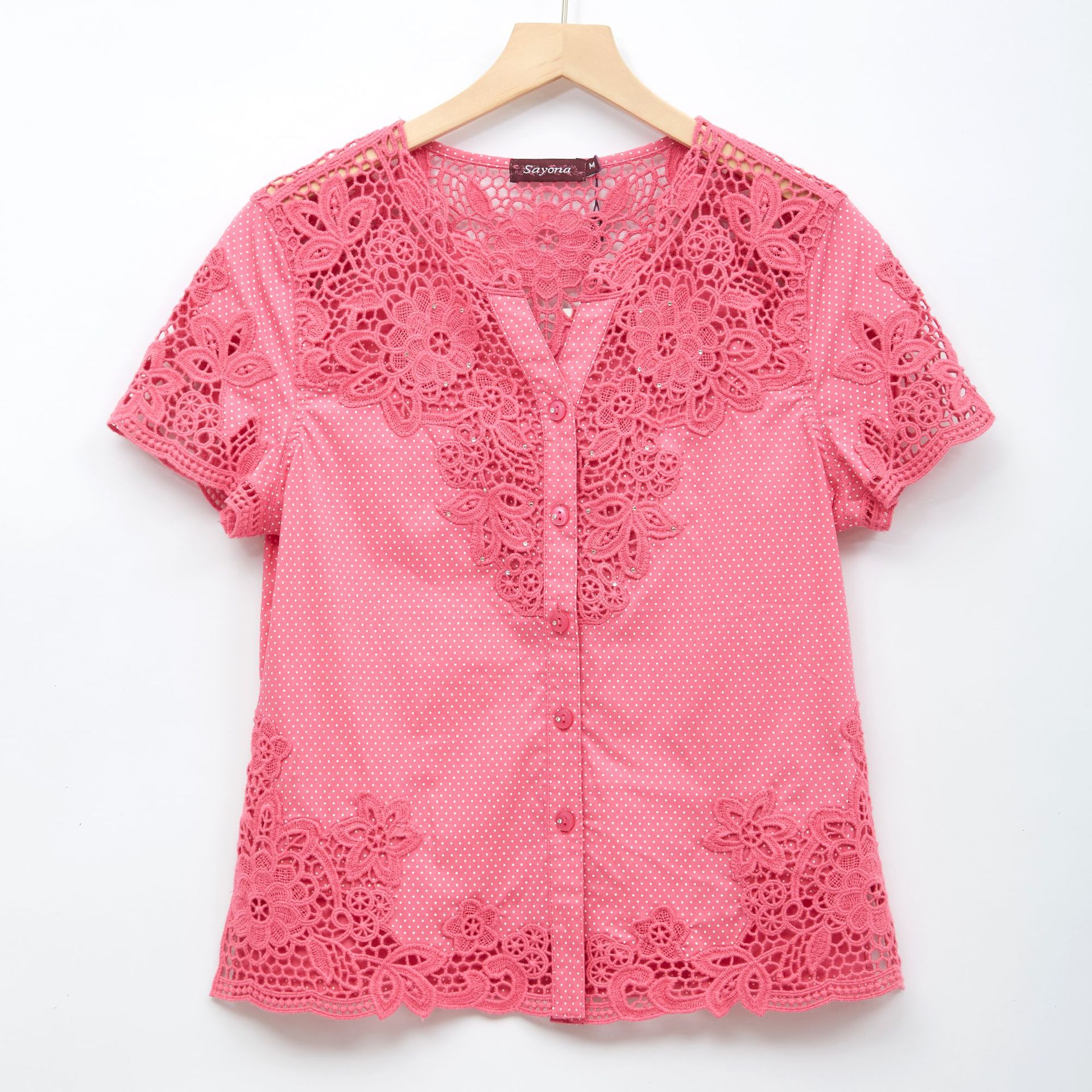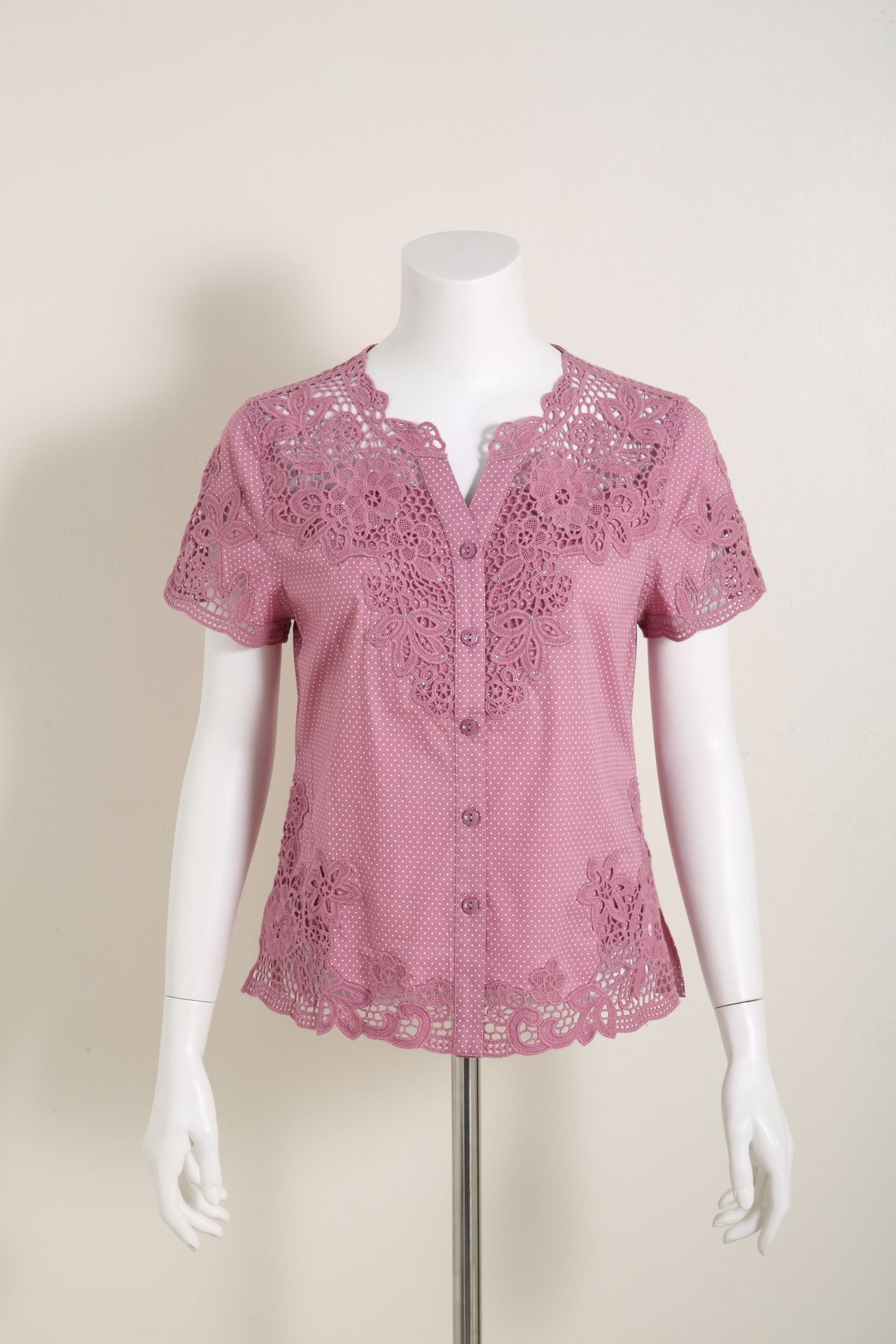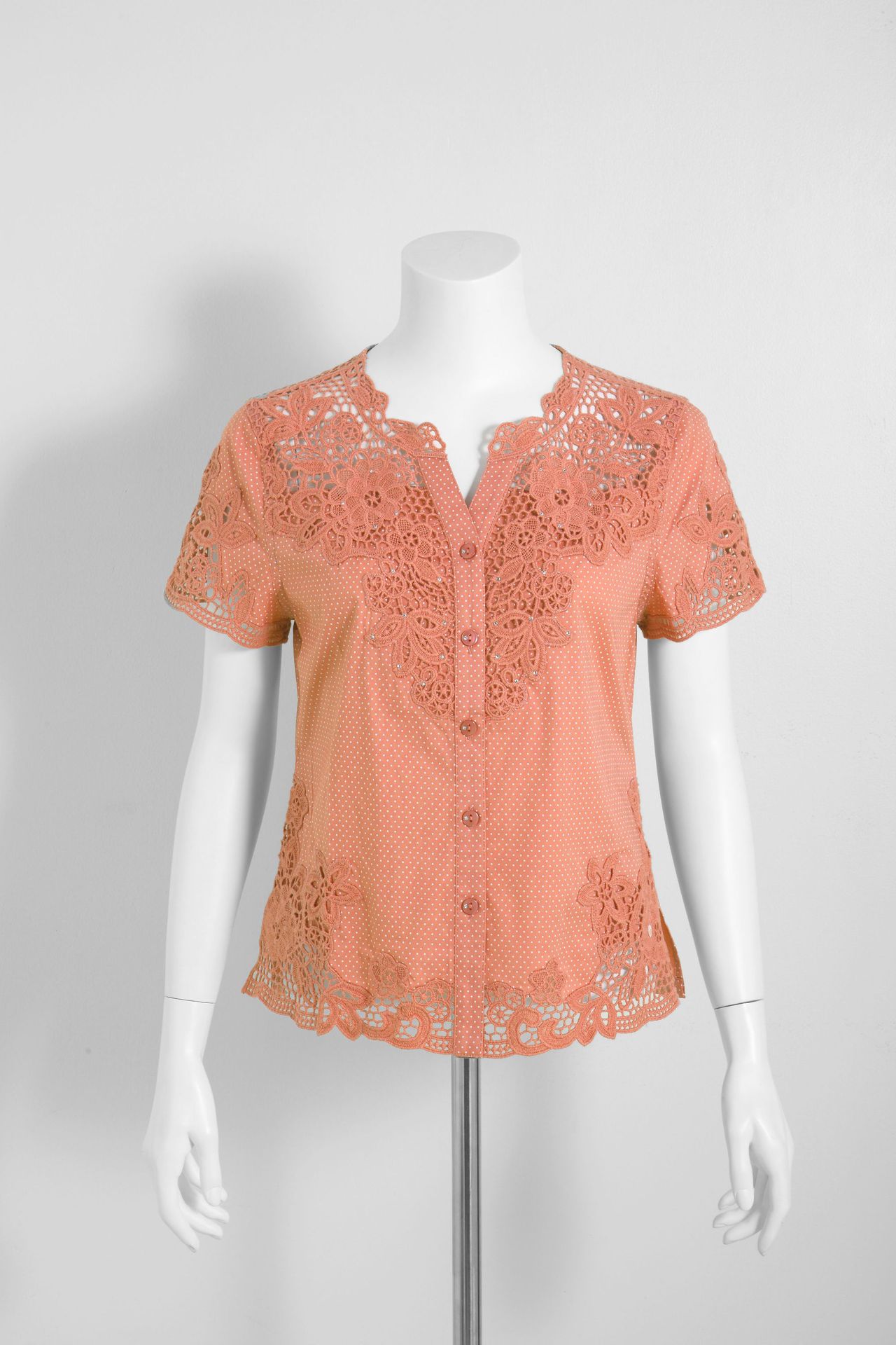 수용성 자수 패치 워크 도트 쉬폰 셔츠 9987