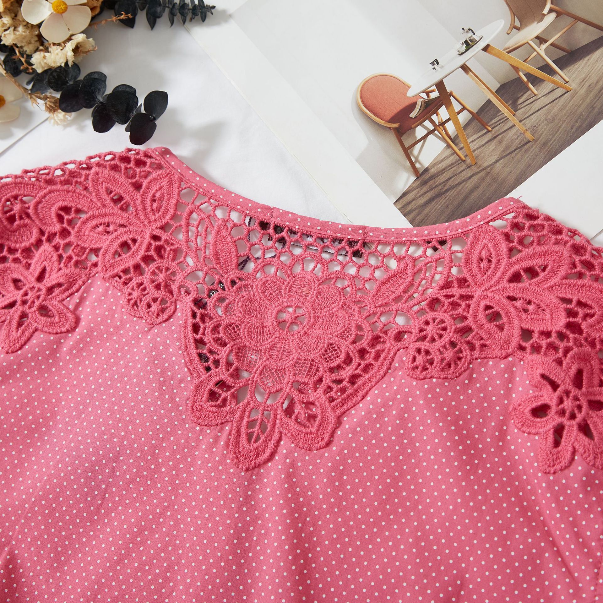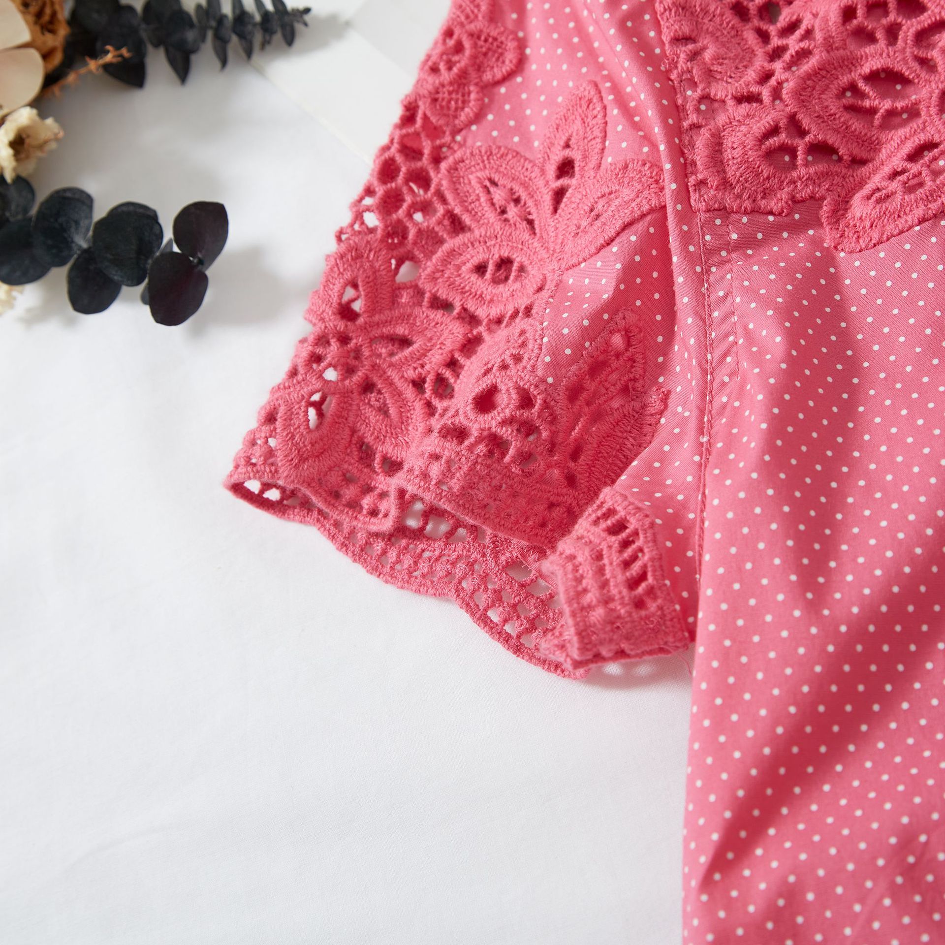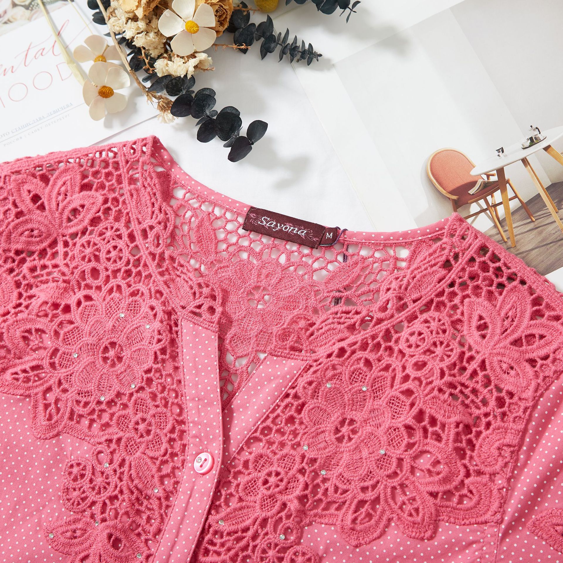 수용성 자수 패치 워크 도트 쉬폰 셔츠 9987스토어 가기
