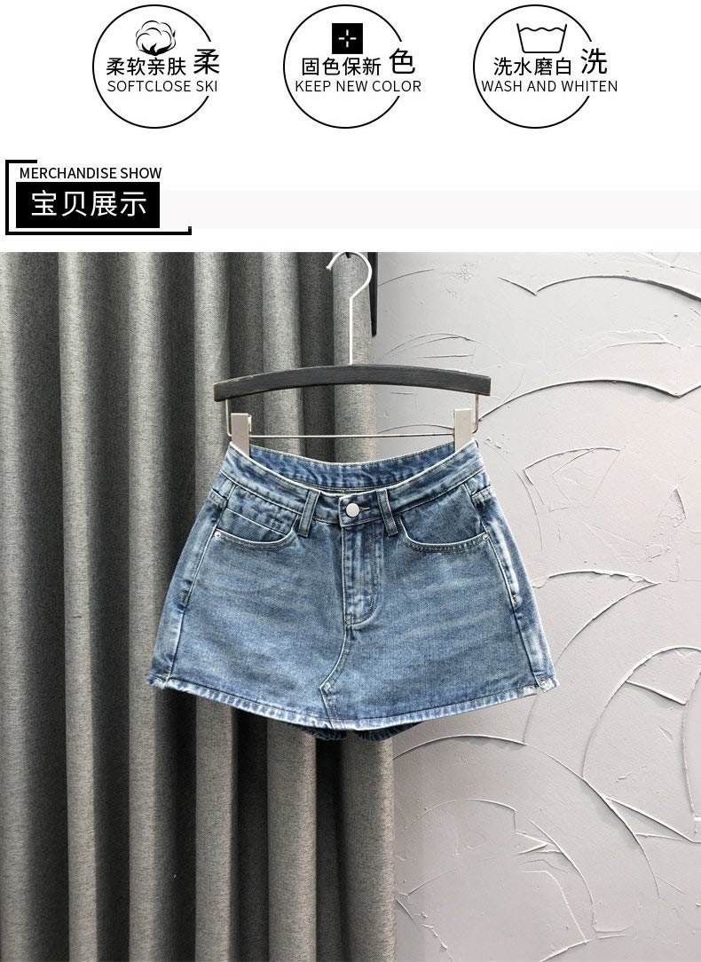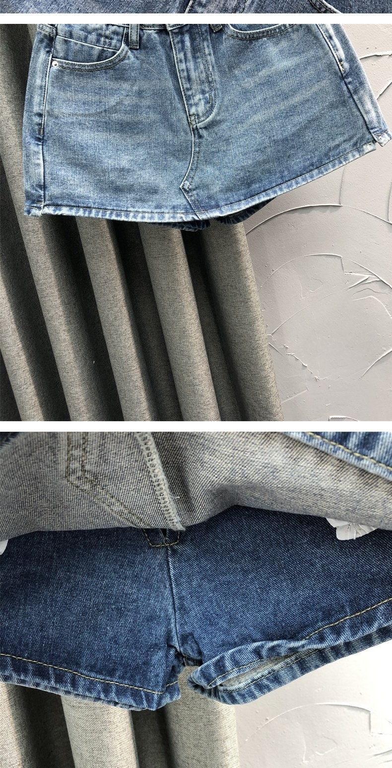 노출 방지 데님 스커트 여성복 봄과 가을 2023 새로운 플러스 사이즈 통통녀 뜨거운 소녀 칼집 A 라인 스커트 바지스토어 가기