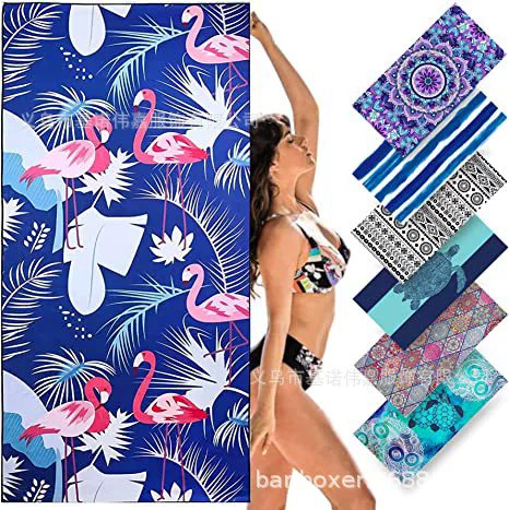 국경 간 뜨거운 판매 마이크로 화이버 플라밍고 시리즈 양면 벨벳 인쇄 비치 타월 대형 다목적 수건
