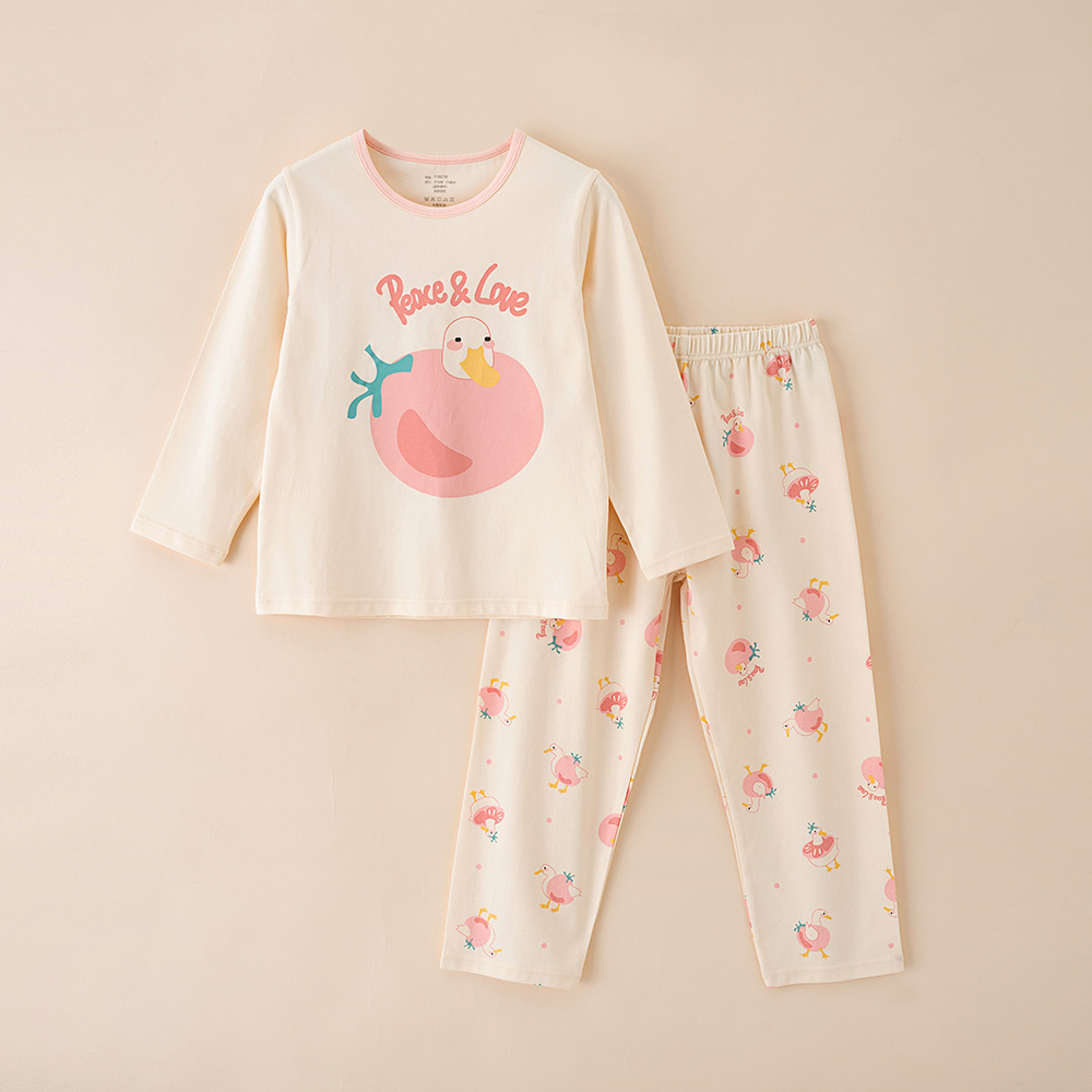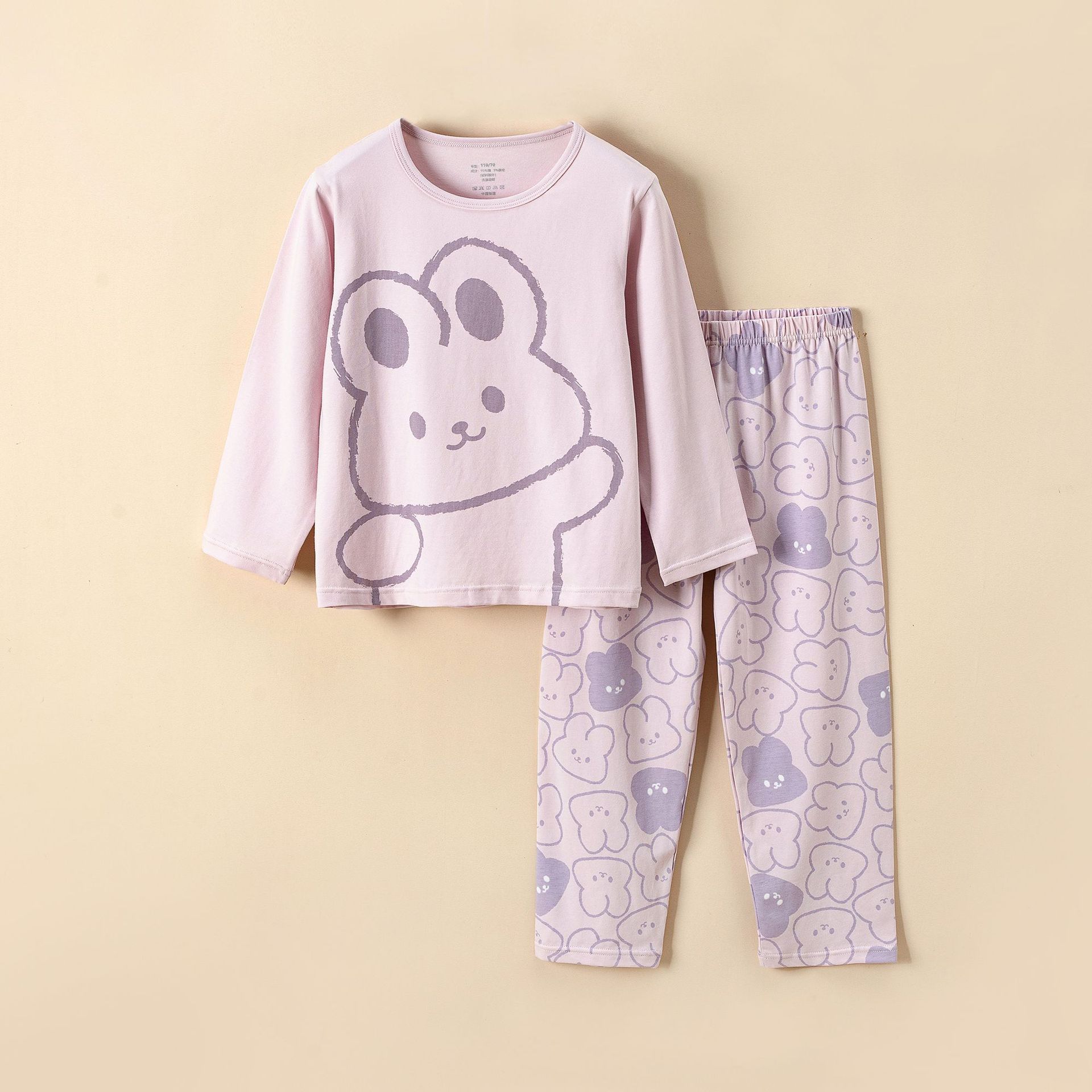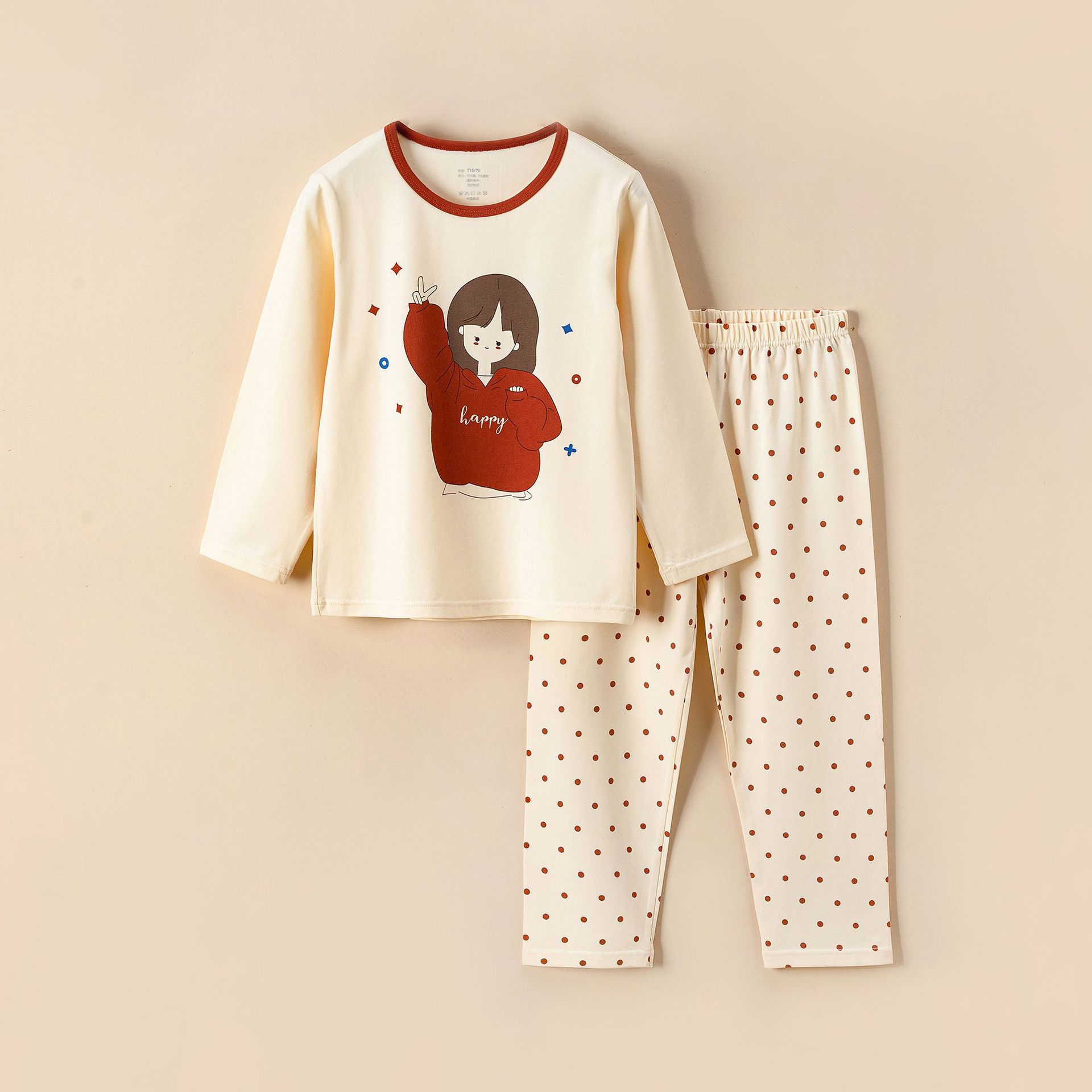 봄 여름 가정복, 순면 긴팔 만화 아동복, 여아용 루즈한 큰 아동용 여아 잠옷