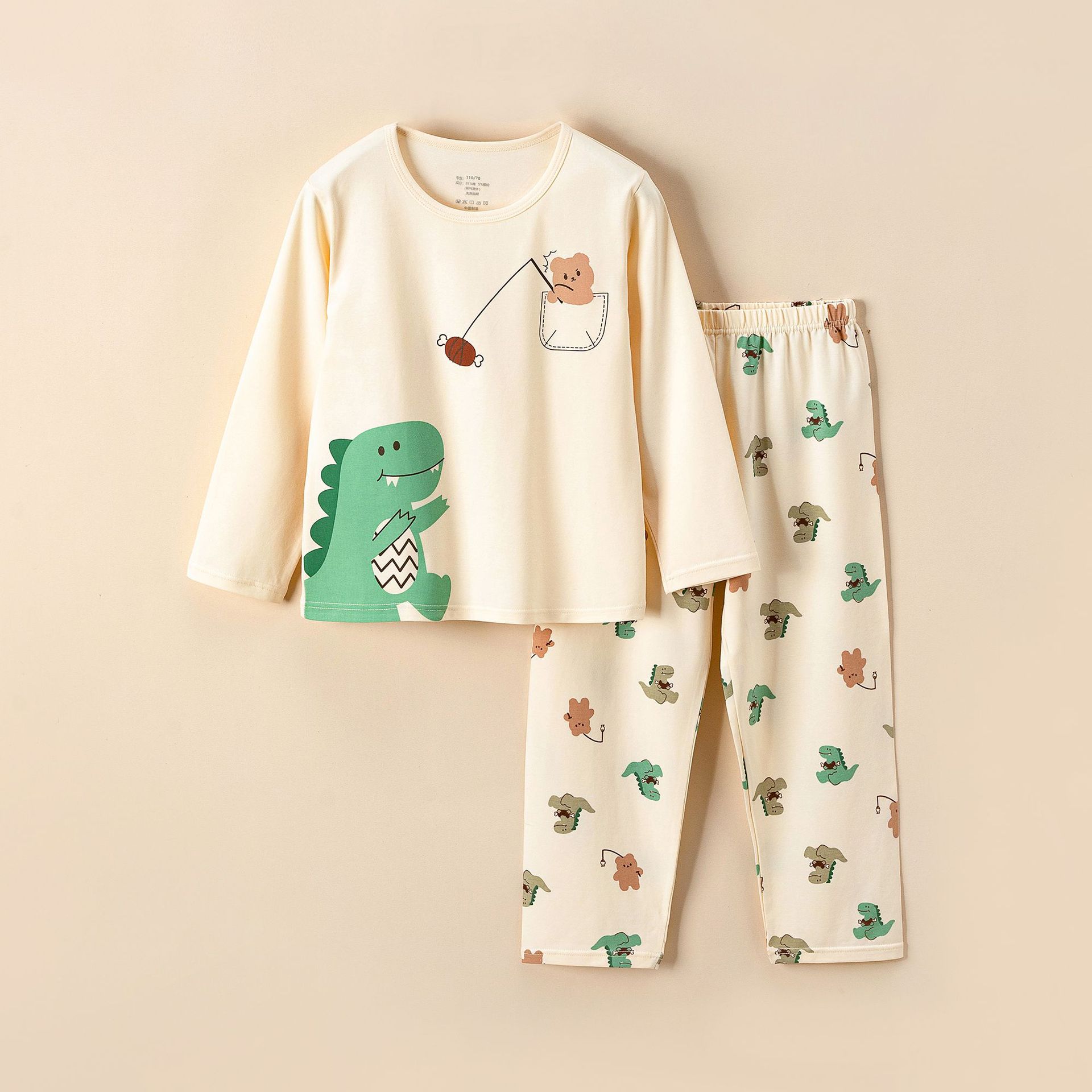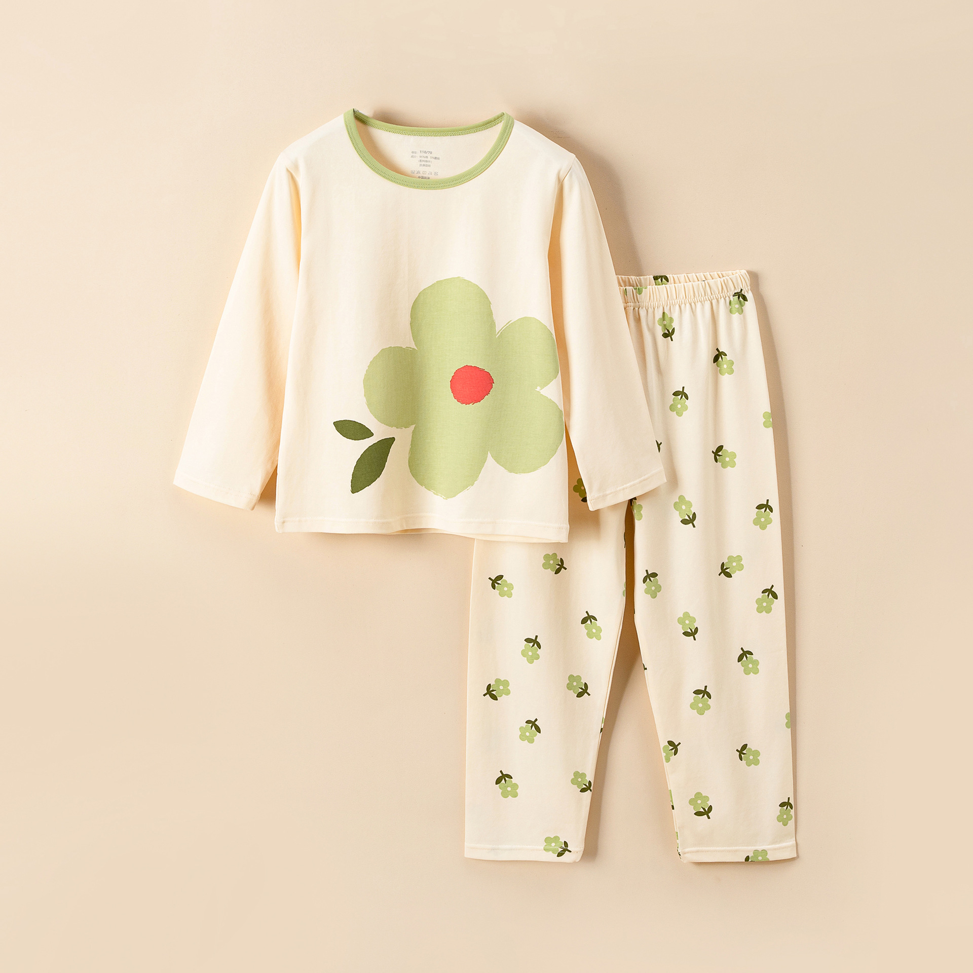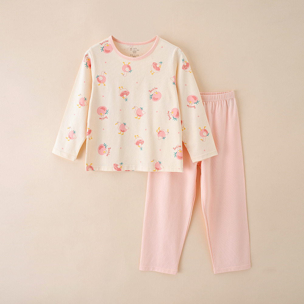 봄 여름 가정복, 순면 긴팔 만화 아동복, 여아용 루즈한 큰 아동용 여아 잠옷