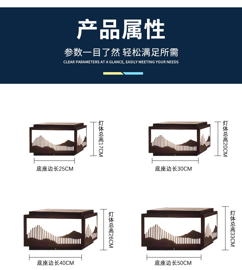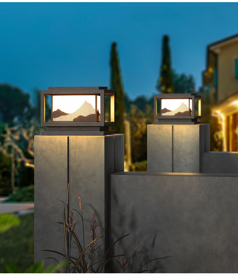 태양 기둥 램프 새로운 중국 스타일 야외 방수 동봉 정원 램프 슈퍼 밝은 야외 빌라 게이트 기둥 램프