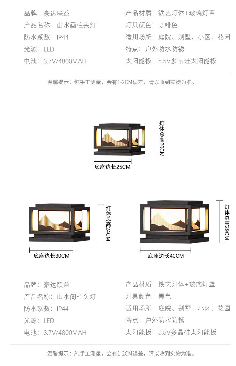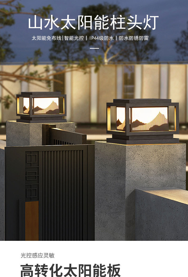 태양 기둥 램프 새로운 중국 스타일 야외 방수 동봉 정원 램프 슈퍼 밝은 야외 빌라 게이트 기둥 램프스토어 가기