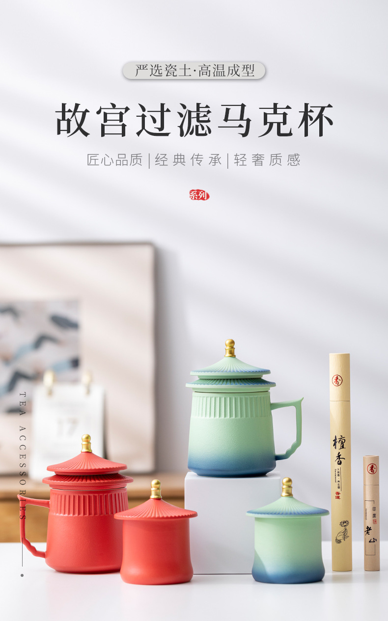 뚜껑이있는 자금성 Wenchuang 찻잔 차 분리 기념일 선물 고급 선물 상자 고객 로고스토어 가기