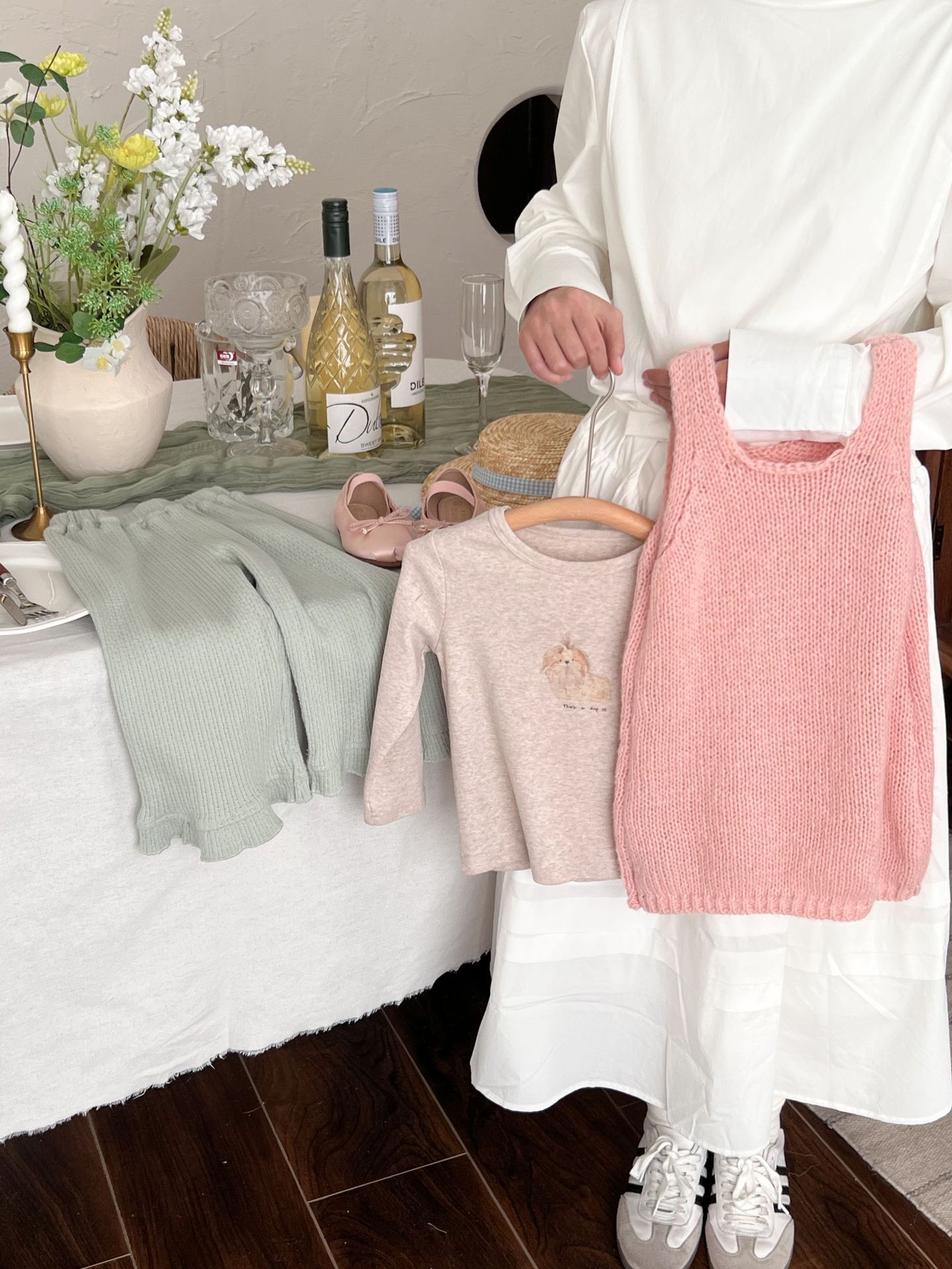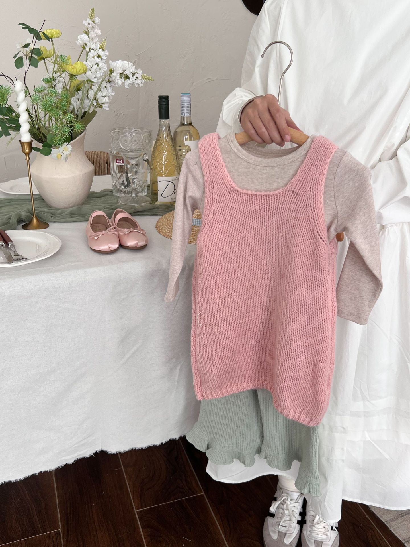 여아복 세트 25 가을 한국 스타일 니트 조끼 원피스 아동용 만화 캐릭터 베이스 레이어 레이스 장식 와이드 팬츠 부드러운 소재스토어 가기