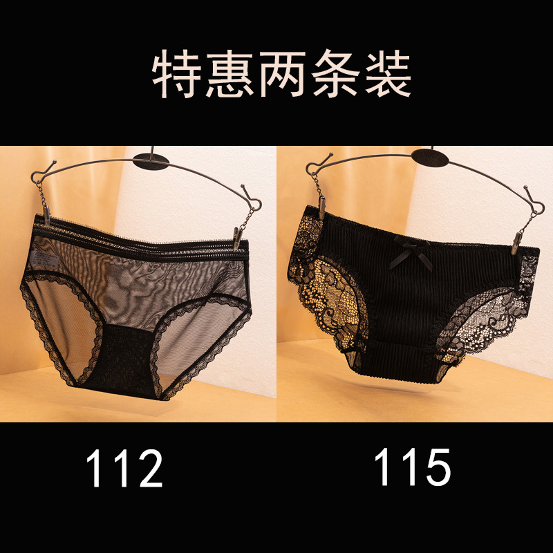 블랙 레이스 속옷 항균 고관절 리프팅 여성 속옷 소녀 학생 섹시 할로우 크로스 브리프