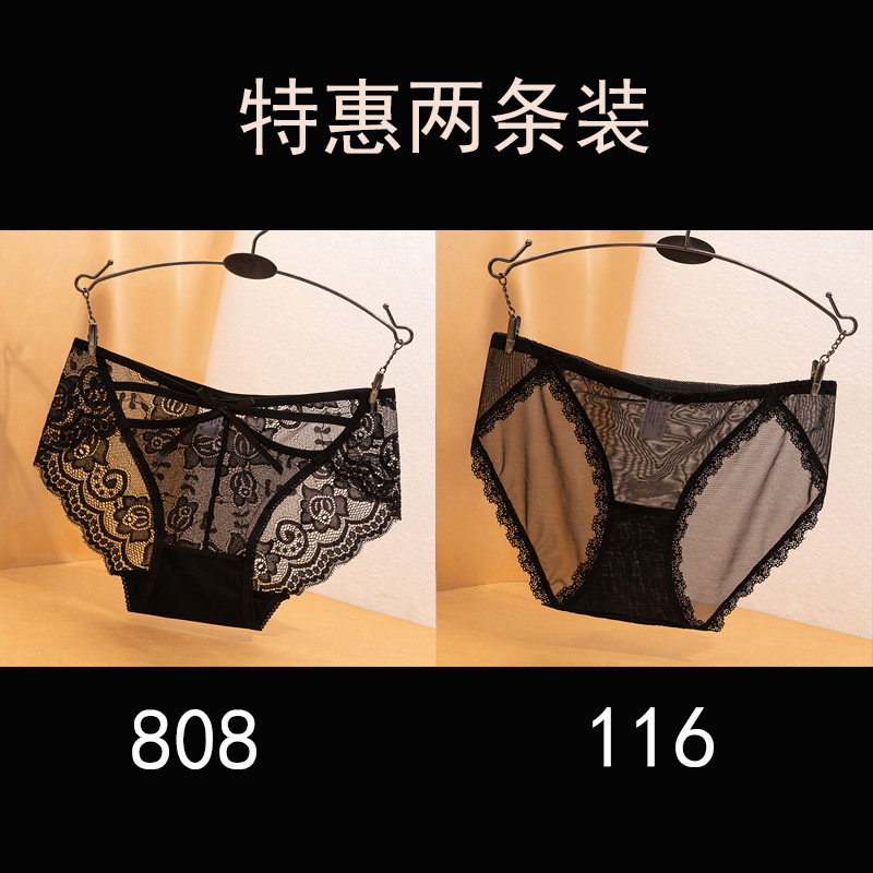 블랙 레이스 속옷 항균 고관절 리프팅 여성 속옷 소녀 학생 섹시 할로우 크로스 브리프스토어 가기