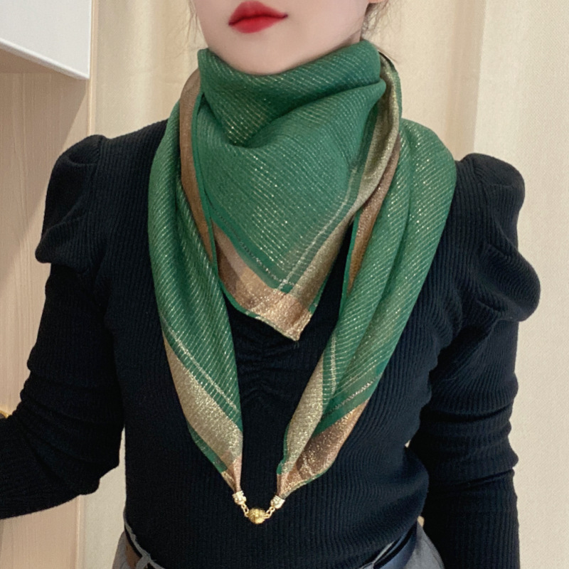 새로운 골드 실크 마그네틱 버클 스퀘어 스카프 목 보호 스카프 85*85 여성 실크 울 패션 올 매치 스카프 숄