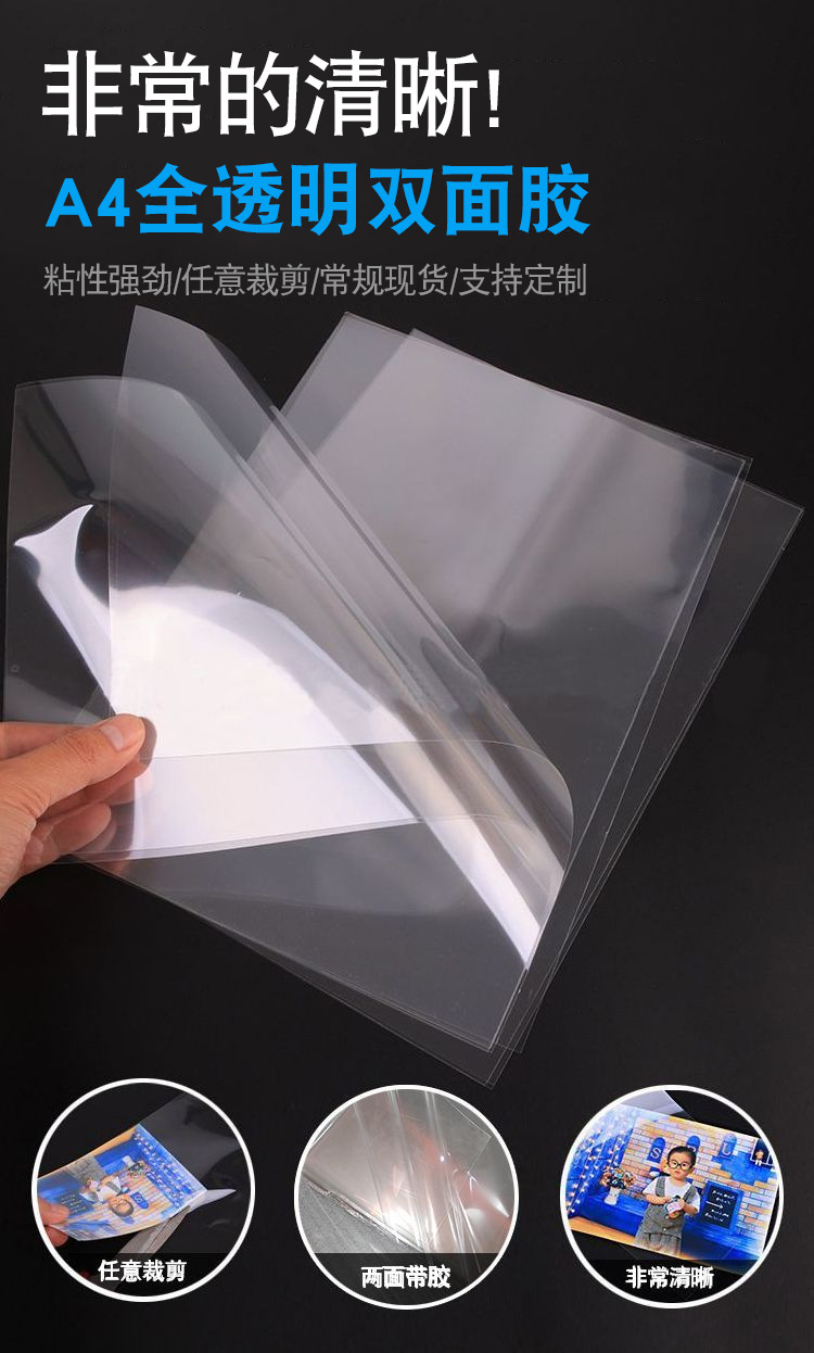 매우 투명한 양면 접착제 A4 높은 접착 아크릴 애완 동물 이미지 등급 원활한 고온 저항 크리스탈 도자기 그림 양면 필름스토어 가기