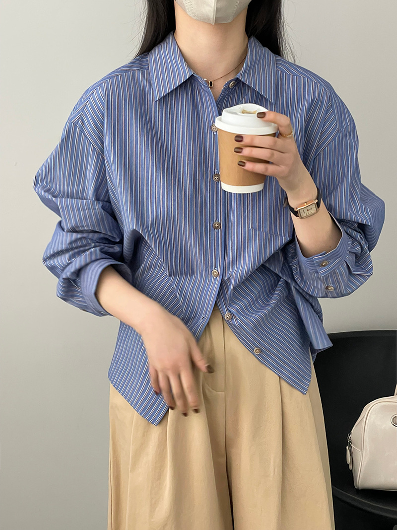 [Zhi Yixi] 셔츠 여성 클래식 다목적 루즈 슬림 한국 스타일 긴팔 탑 2363 키가 크고 세련된 기질스토어 가기
