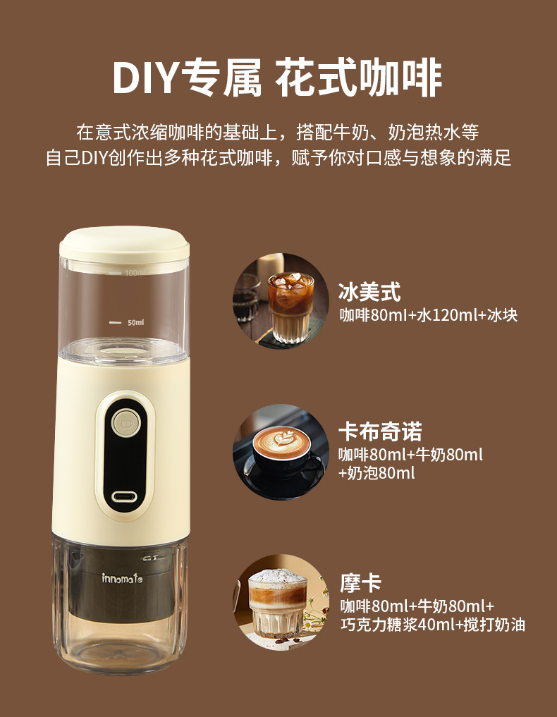 무선 휴대용 에스프레소 커피 머신 전기 에스프레소 캡슐 작은 휴대용 커피 머신 야외 자동차 가구스토어 가기